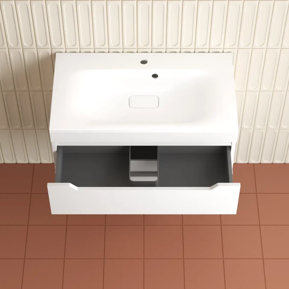 Фасады и боковины из МДФ толщиной 16 мм в пленке ПВХ премиум класса. Ящики и фасады с системой плавного закрывания с доводчиком SOFT CLOSE. Экологичные и влагостойкие материалы.