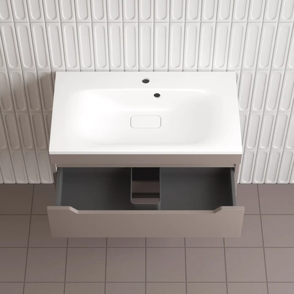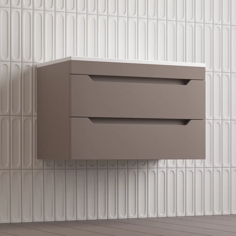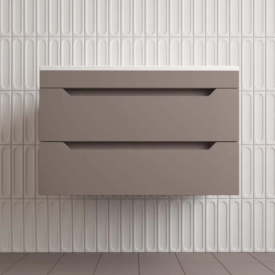 Тумба подвесная Style line "Остин" с раковиной Фортуна 2 ящ тауп темный эмаль PLUS