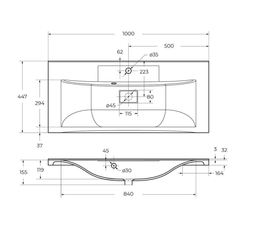 Раковина из искусственного камня, чёрная,1000x455x150