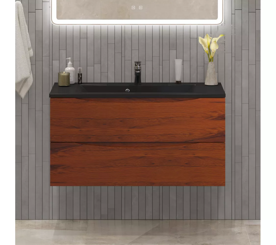 Тумба подвесная BelBagno MARINO Rovere Cillegio, раковина чёрная