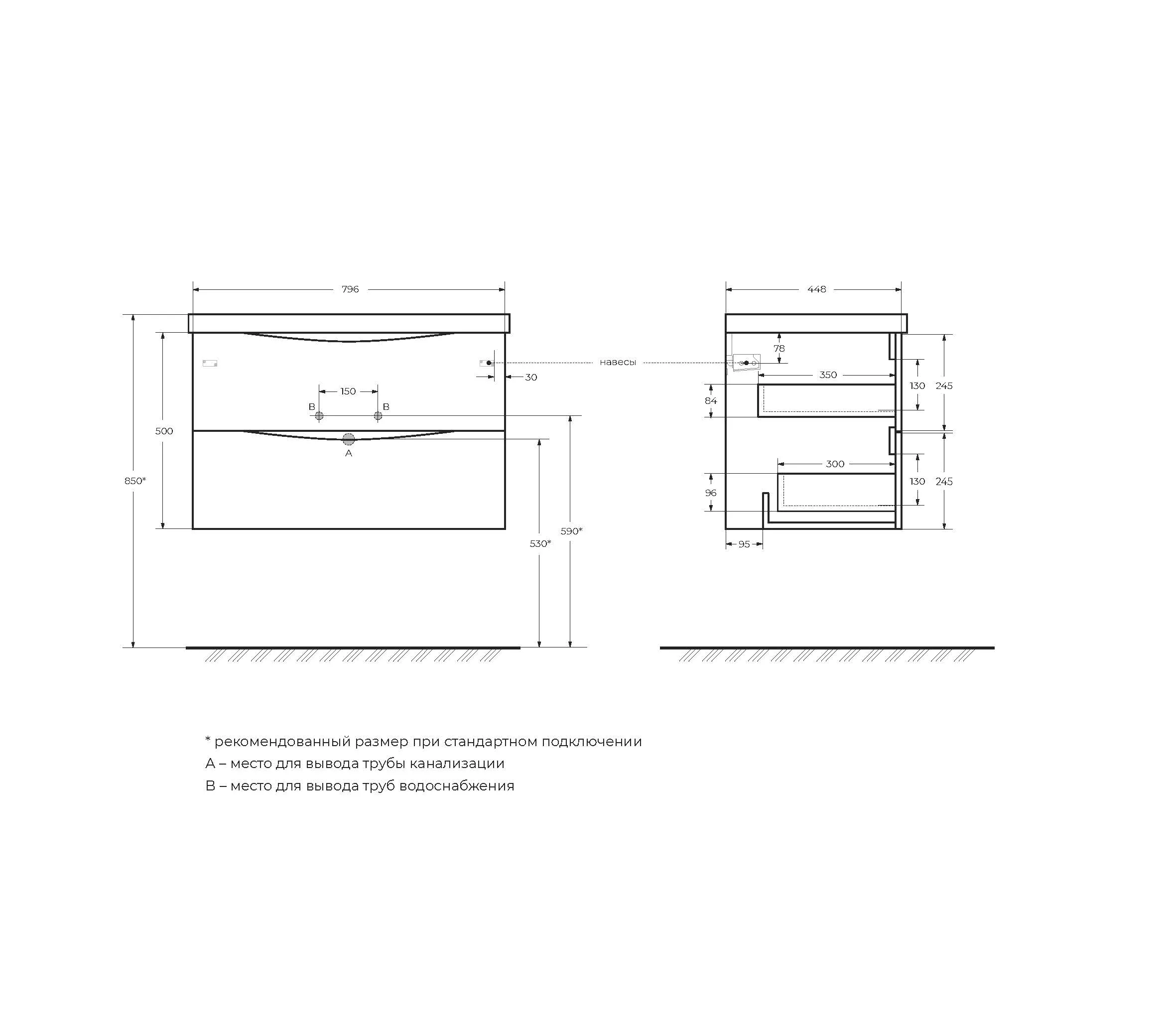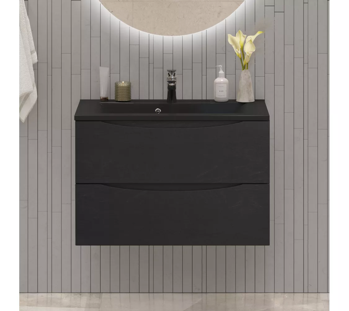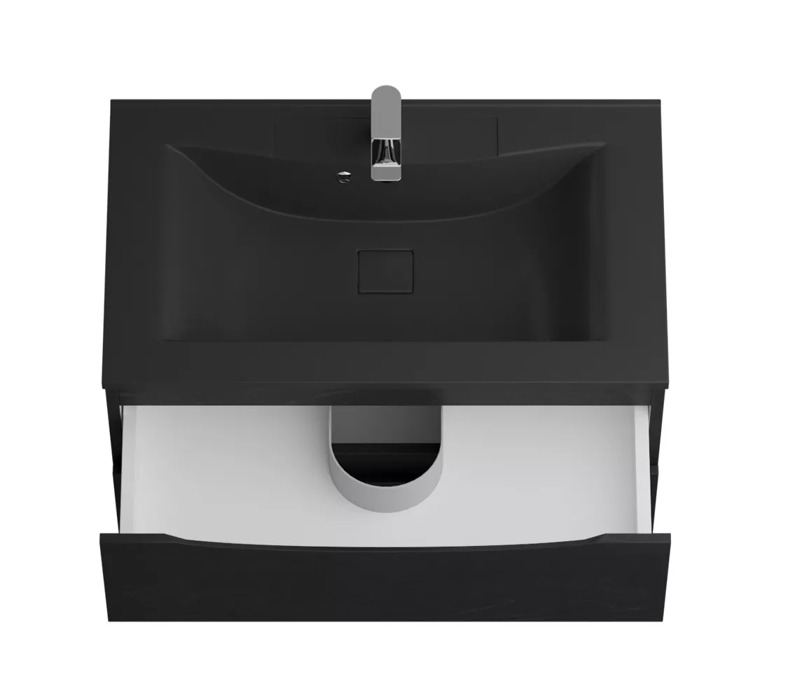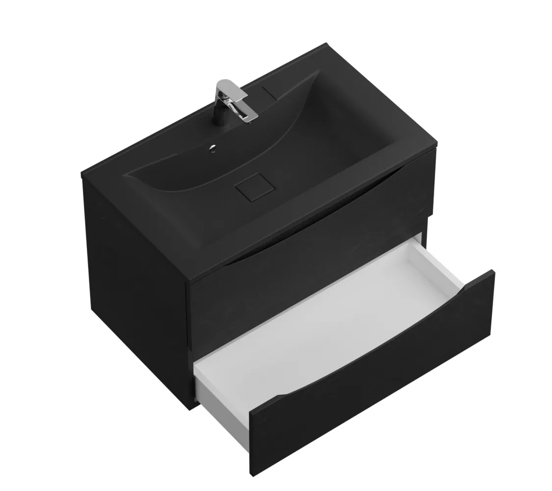 Тумба с раковиной подвесная BelBagno MARINO 80 Rovere Cioccolato Amaro, раковина чёрная
