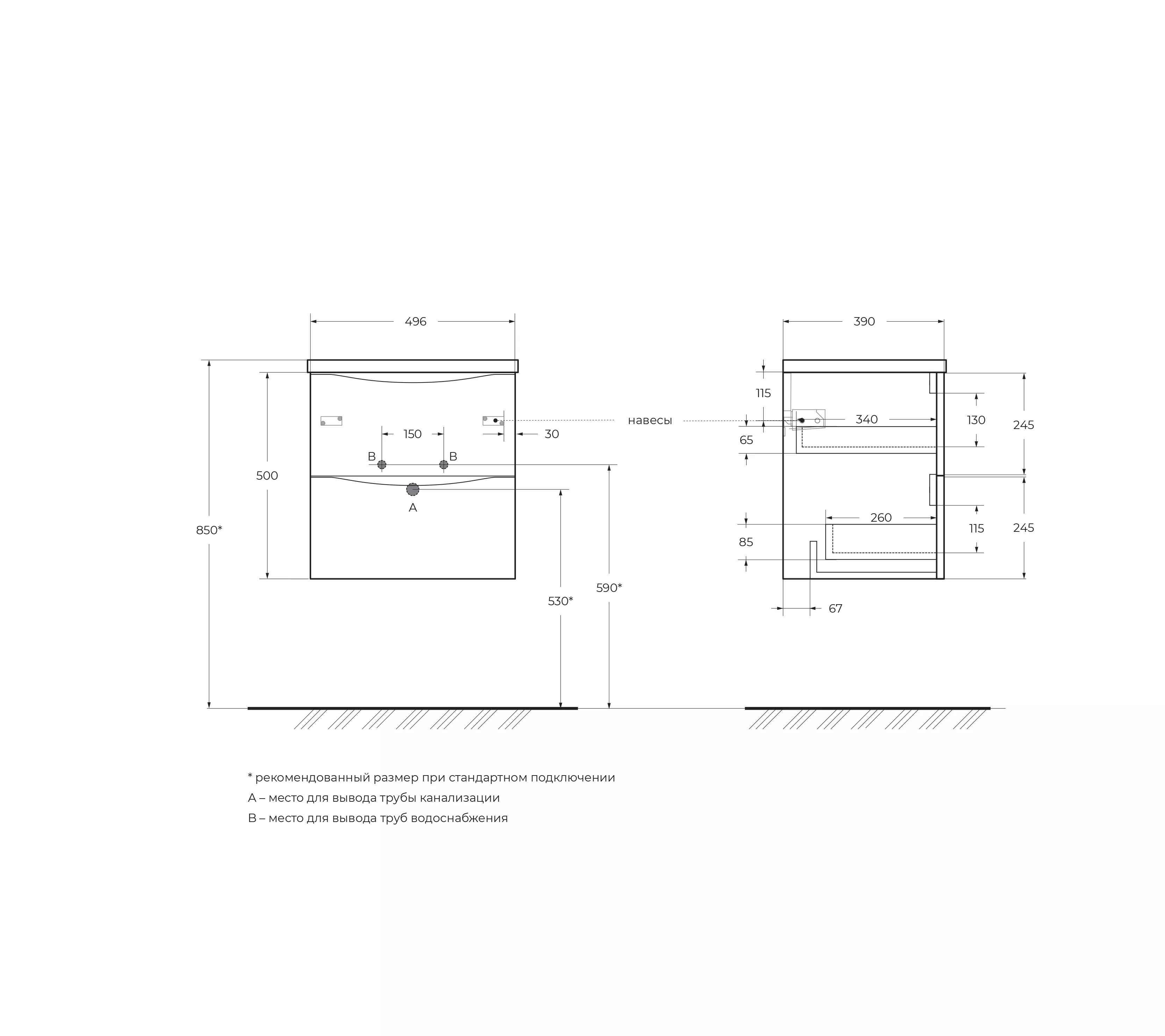 Тумба с раковиной подвесная BelBagno MARINO-CER-MINI Rovere Nature Grigio