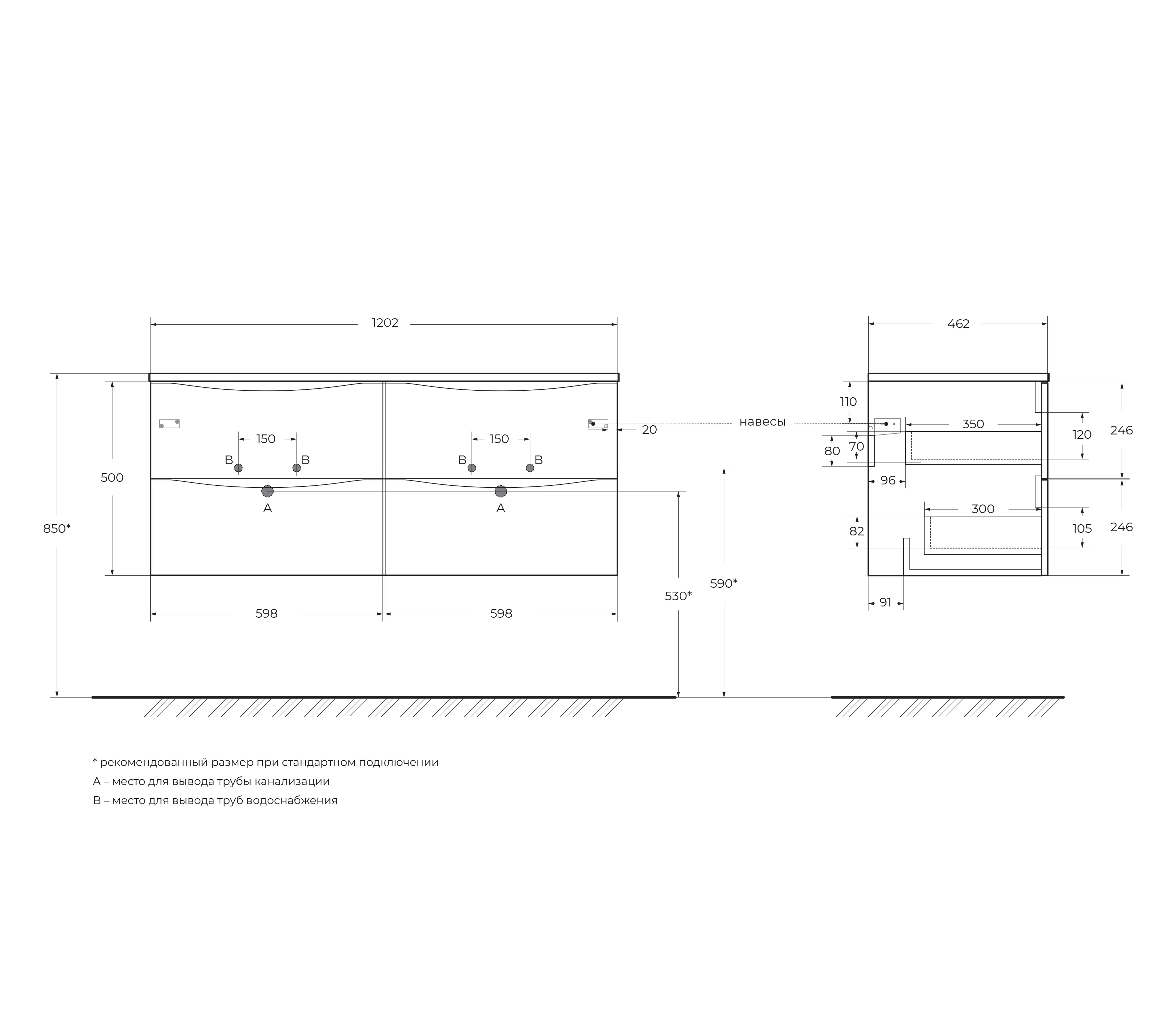 Тумба подвесная с раковиной 2 чаши, с 4 ящиками BelBagno MARINO-CER-N 120 Bianco Lucido