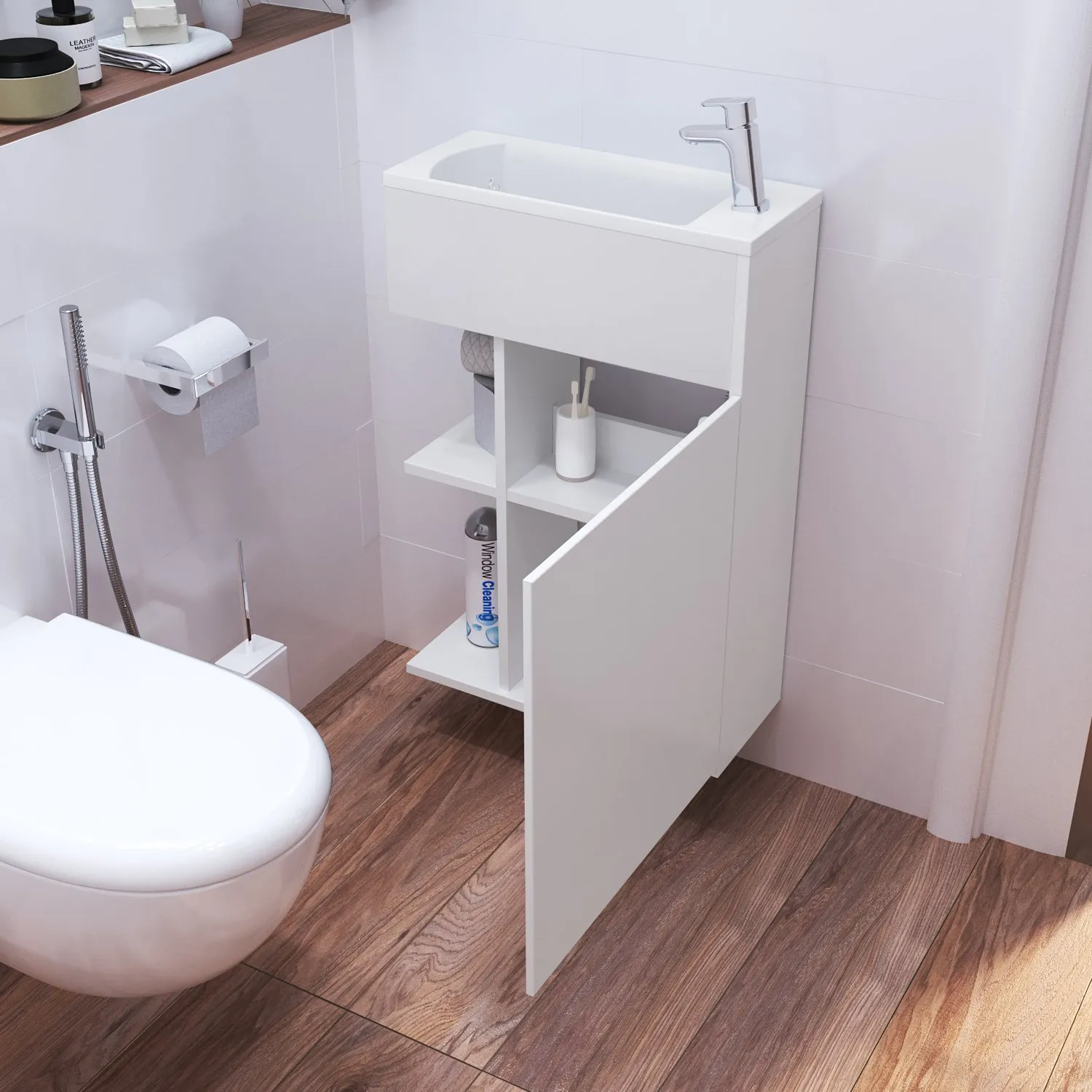 Тумба с раковиной в современном стиле. Во всех смыслах утонченная мебель идеально подойдет в гостевой санузел или маленькую ванную комнату. Корпус и фасады тумбы выполнены из МДФ, облицованы глянцевой ПВХ пленкой белого цвета. Минималистичный дизайн без ручек: открывание от захвата. Петли на дверце с доводчиками. Уникально узкая раковина из полимерной керамики - всего 21 см! Достаточно узкая, тем самым экономит пространство,и одновременно глубокая для того, чтобы избежать расплескивания. Обладает убедительным эстетическим преимуществом, выраженным в утонченных краях и малом радиусе закруглений. Раковина имеет боковой борт под повседневные аксессуары и безопасные грани по периметру (для правильного стока воды). Компактное решение найдет место в любом интерьере. Материал раковины гипоаллергенный. Все необходимое в комплекте. В тумбу с раковиной предустановлен телескопический сифон, гофрированная трубка, выпуск и донный клапан. Не требует сборки! Решение, которое сэкономит место, время и ваш бюджет. 2 года гарантии от производителя.