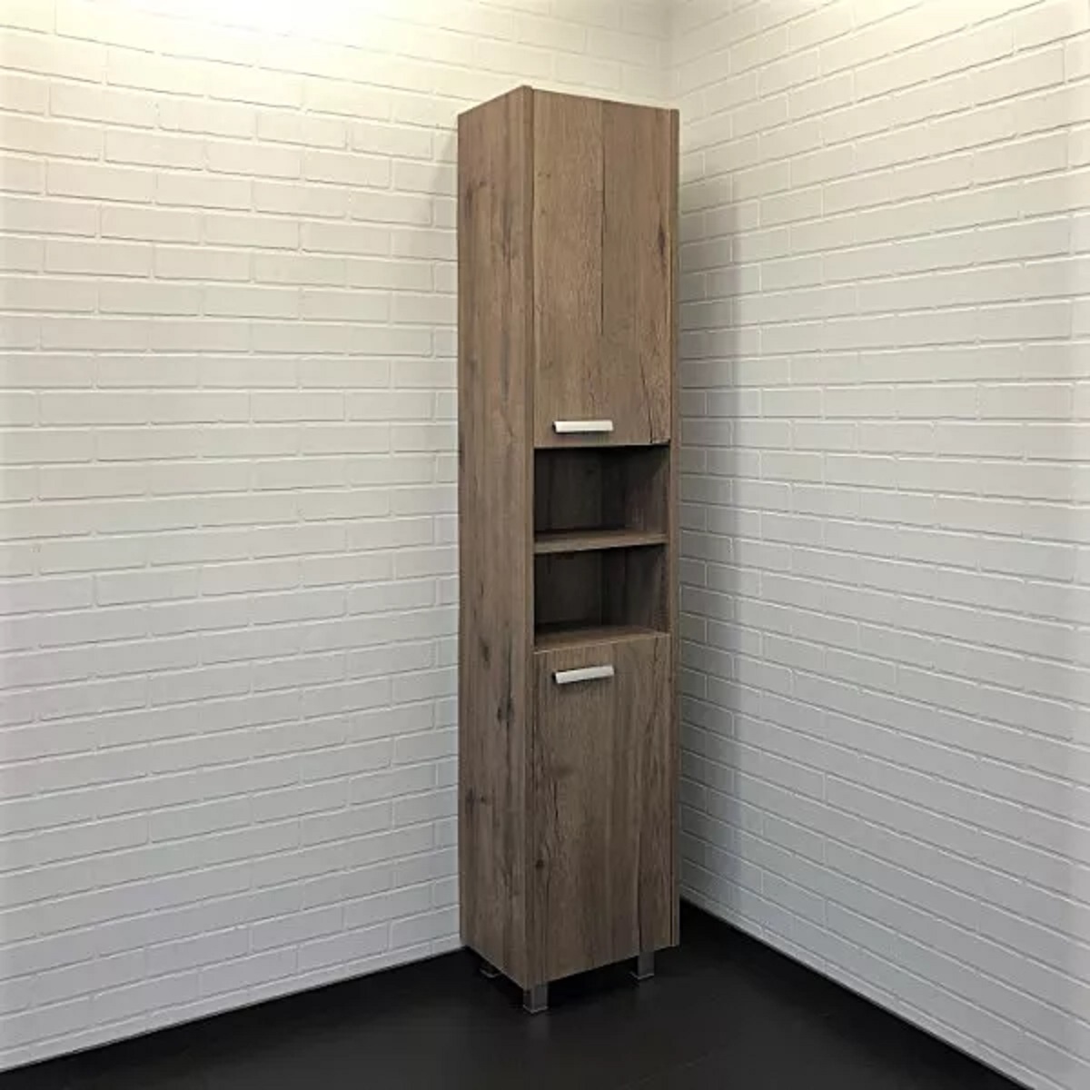 Шкаф-колонна отличное решение для хранения разных предметов необходимых в ванной комнате. За дверцами по одной горизонтальной полке.