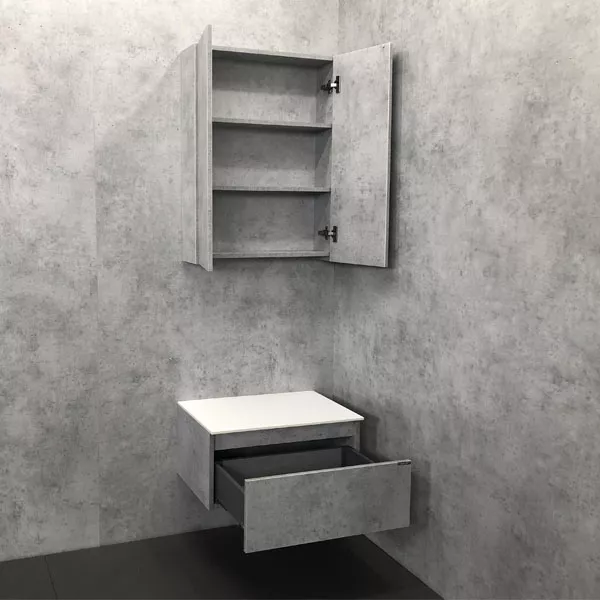 Подвесной шкаф из коллекции Осло отличное решение для хранения разных предметов необходимых в ванной комнате. За створками две горизонтальные полки. Петли с механизмами плавного закрывания.