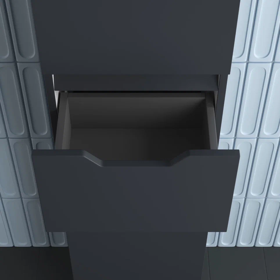 Фасады и боковины из МДФ толщиной 16 мм в пленке ПВХ премиум класса. Ящики и фасады с системой плавного закрывания с доводчиком SOFT CLOSE. Экологичные и влагостойкие материалы.