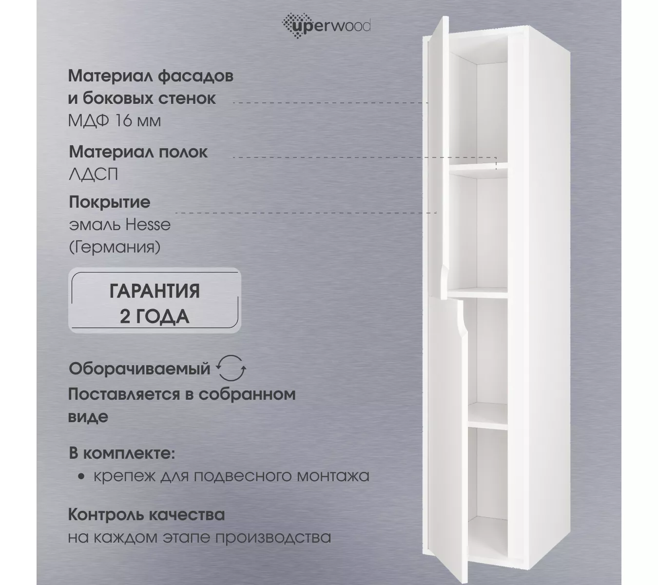 Подвесной шкаф-пенал Uperwood Modul для ванной комнаты представляет собой функциональное, надежное и практичное решение, которое отлично впишется в любой современный дизайн ванной комнаты.