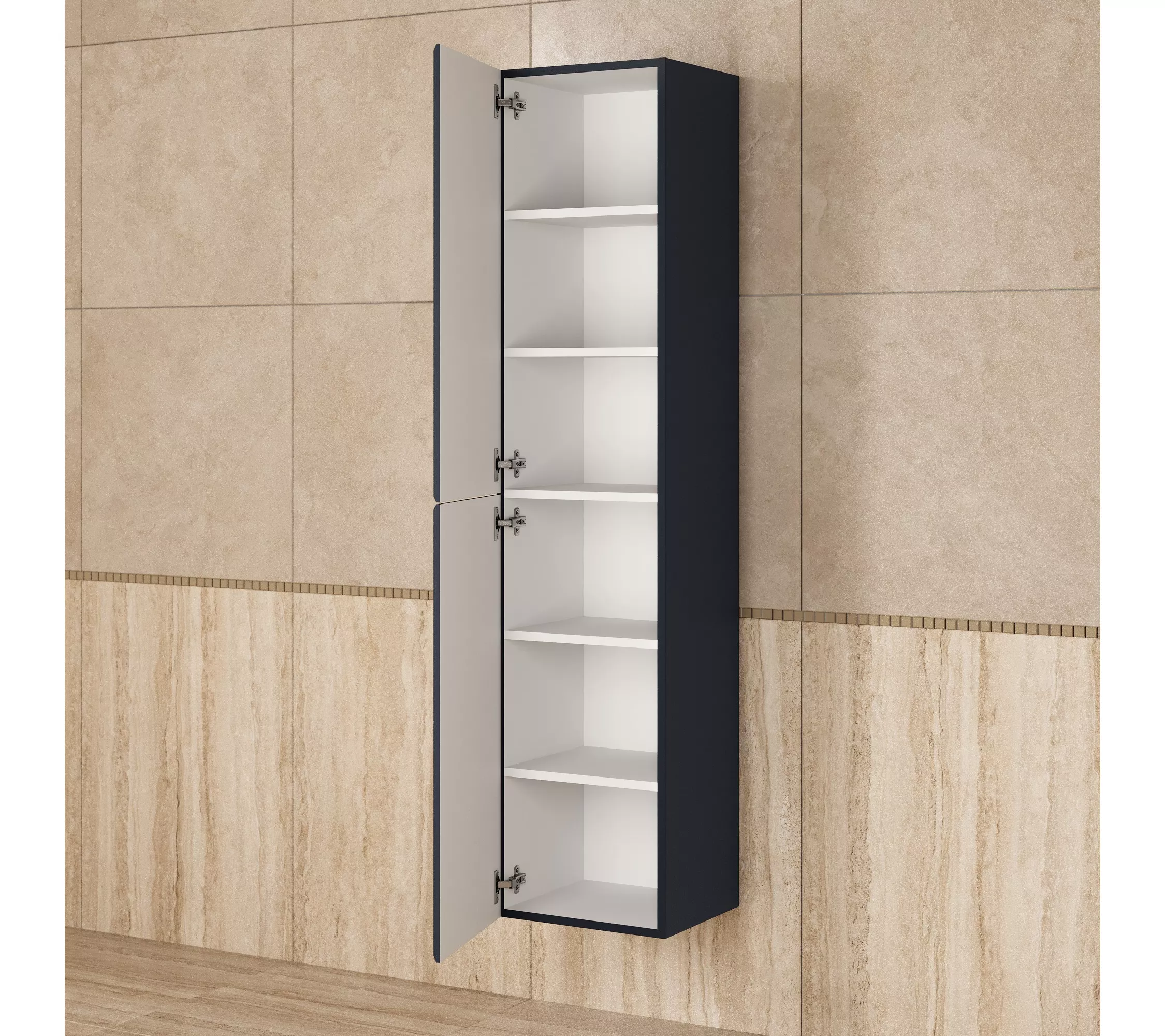 Подвесной шкаф-пенал для ванной комнаты от бренда Uperwood из коллекции Foster с распашными дверцами, которые оборудованы ручками, представляет собой функциональное, надежное и практичное решение, которое отлично впишется в любой современный дизайн ванной комнаты.