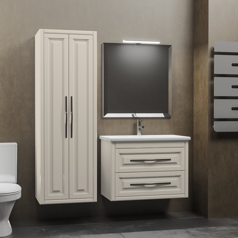 Модель со строгим дизайном с рамными фасадами и функциональной конструкцией прекрасно дополнит современный интерьер ванной комнаты.