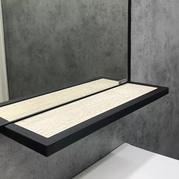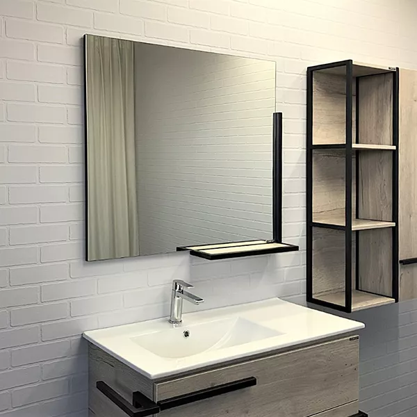 Зеркало на металлическом каркасе с интегрированной полкой. Зеркальное высококачественное полотно с амальгамой на основе серебра.