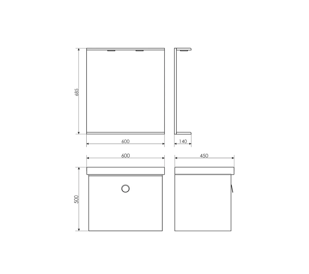 Габариты (ШхВхГ): 500*685*140 мм / 600*685*140 мм