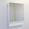 Зеркальное высококачественное полотно с амальгамой на основе серебра. Створки оснащены петлями с плавным закрыванием. Обе боковые створки зеркала открываются наружу. За широкой створкой две горизонтальные полки, за узкой одна. На нижней внешней полке можно расположить невысокие принадлежности для умывания.