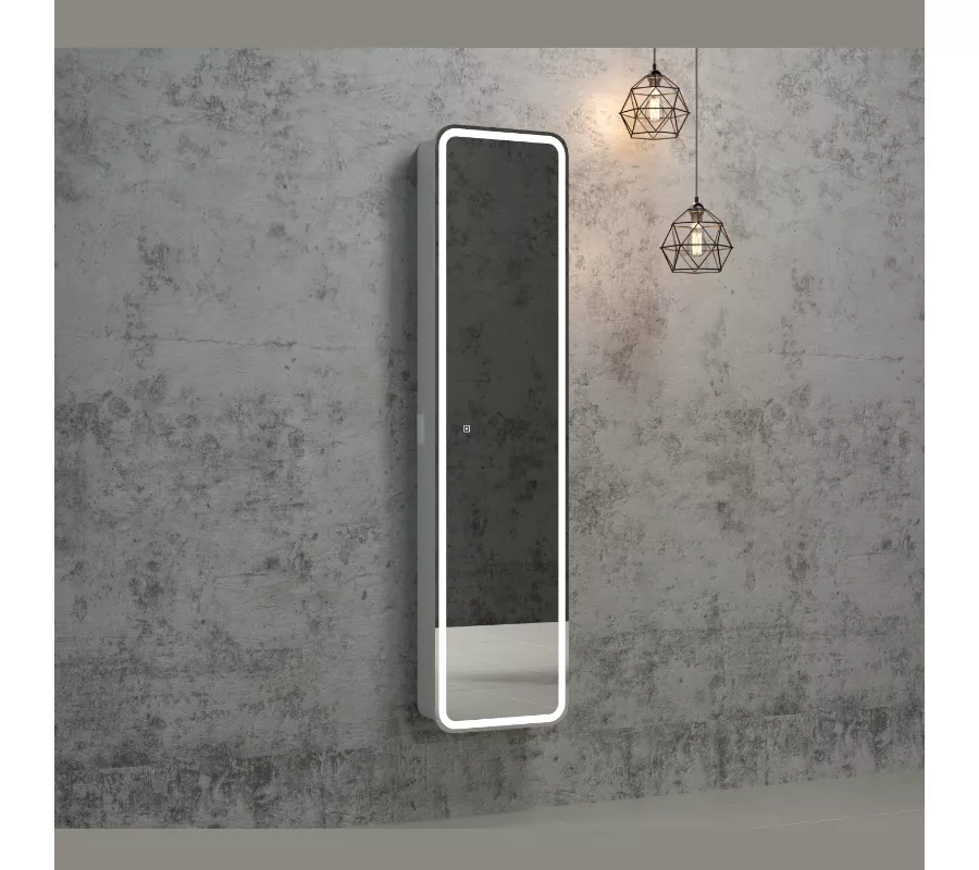 Зеркальный шкафпенал "Lorenzo LED" 400х1600 с розеткой - это шкаф-зеркало нового поколения, изготовленное из зеркального полотна толщиной 4 мм от ведущего европейского производителя AGC.