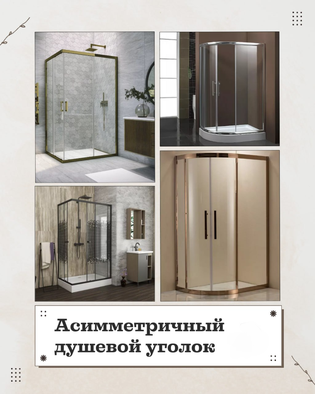 • Форма. Душевые ограждения бывают прямоугольные, квадратные, полукруглые и асимметричные. На выбор формы влияют особенности интерьера, планировка и метраж комнаты;