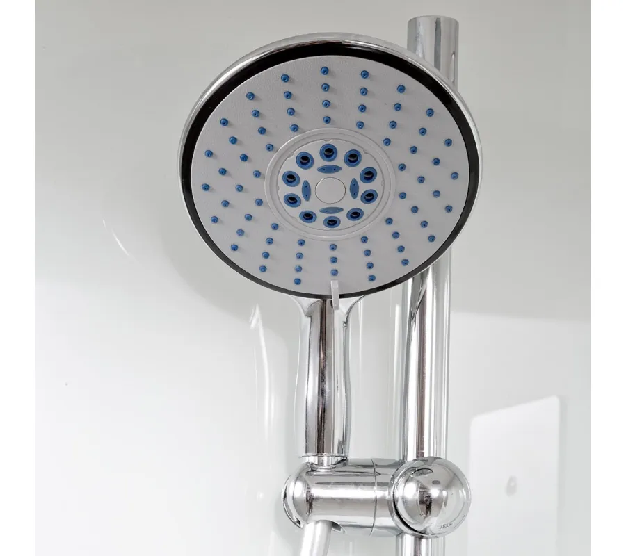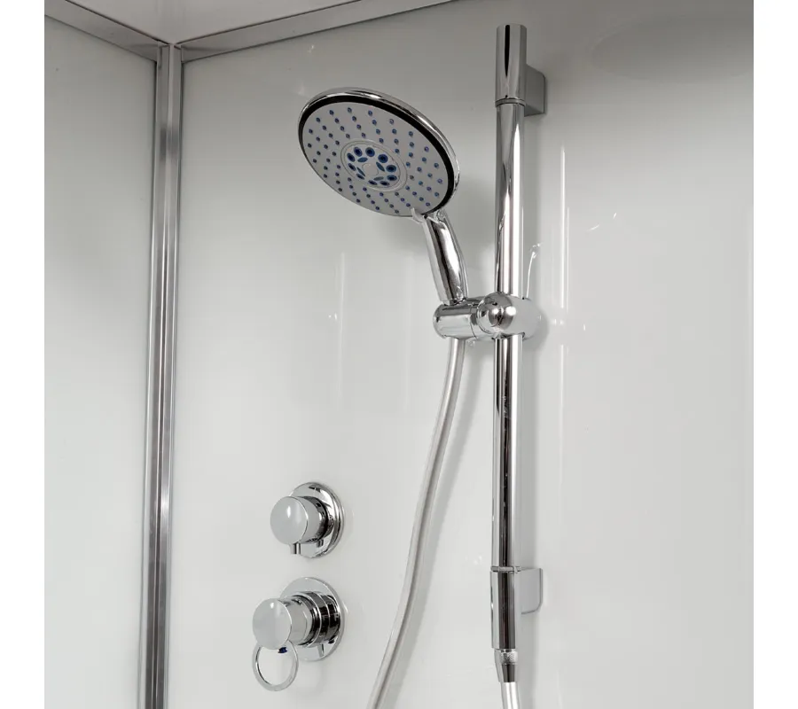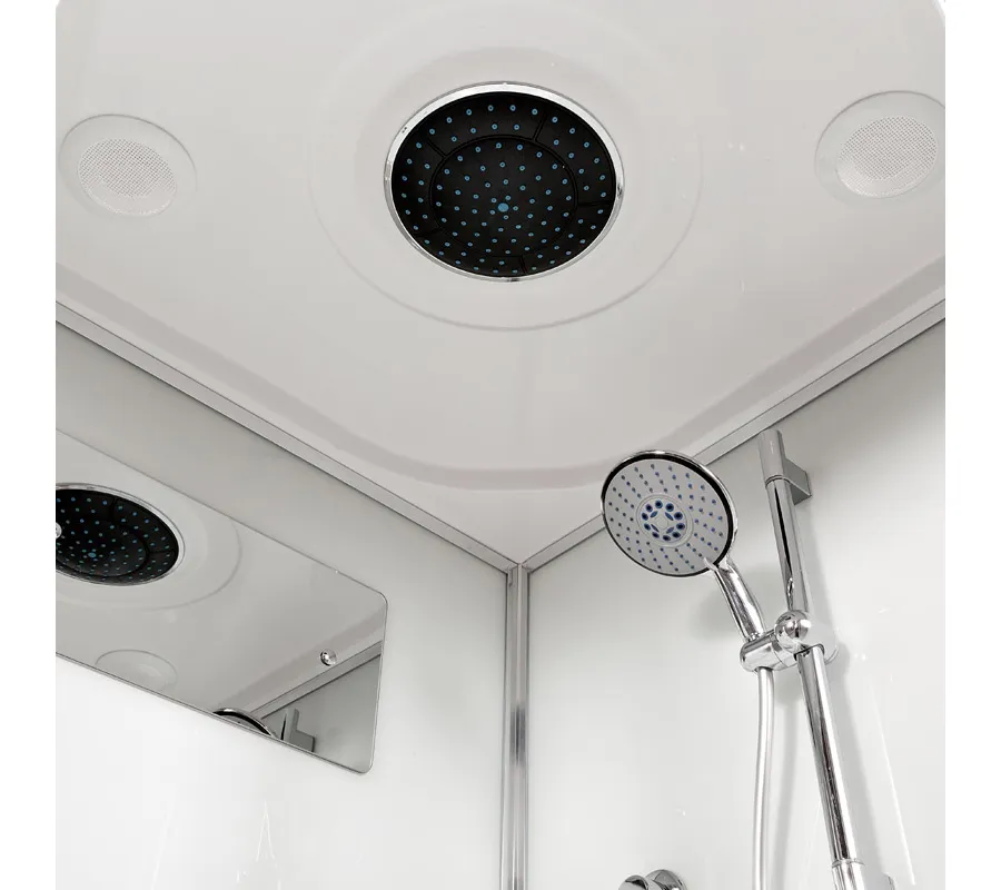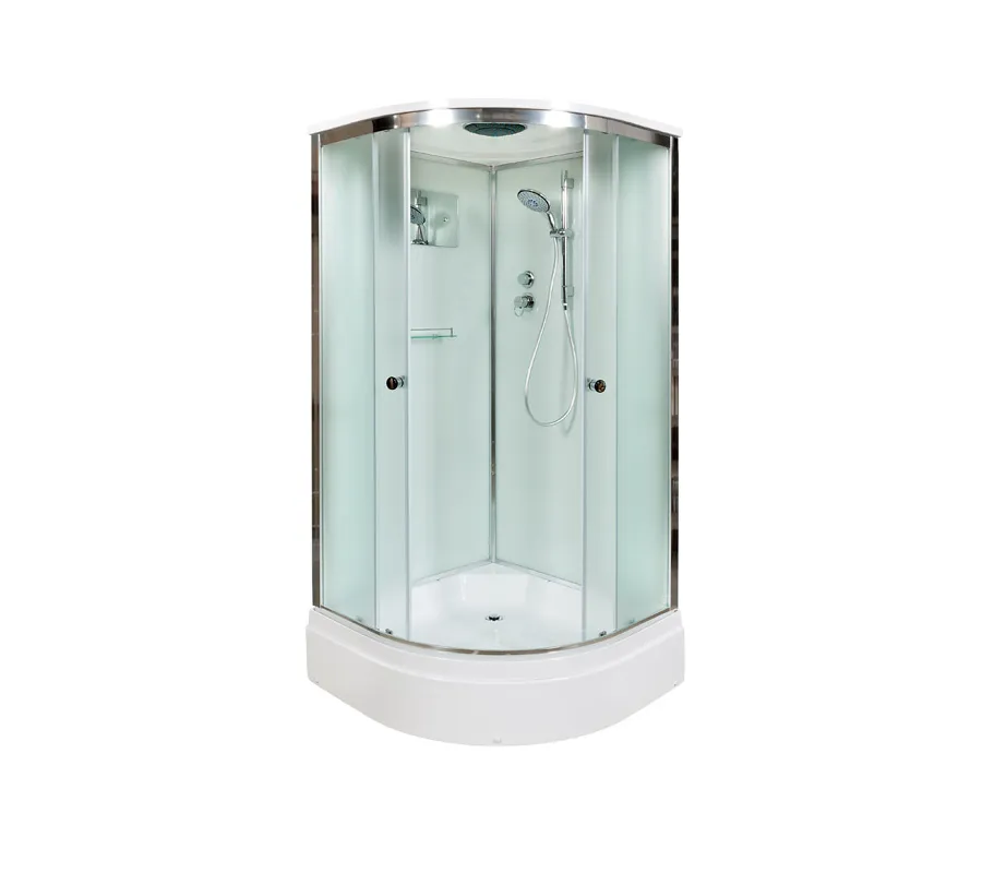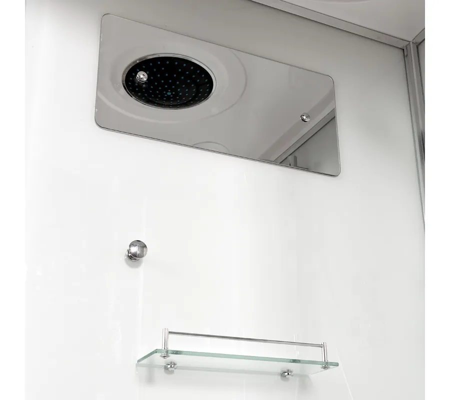В комплекте сифон, полочка, зеркало, смеситель, переключатель режимов, передний съемный экран, душевой гарнитур,вентиляция
