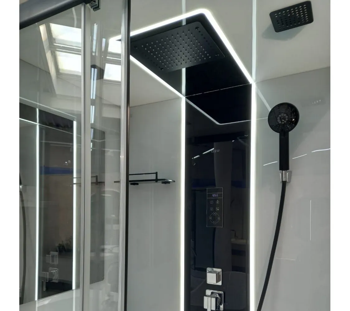 • Зеркало, интегрированное в стеклянную панель для удобства и комфорта.