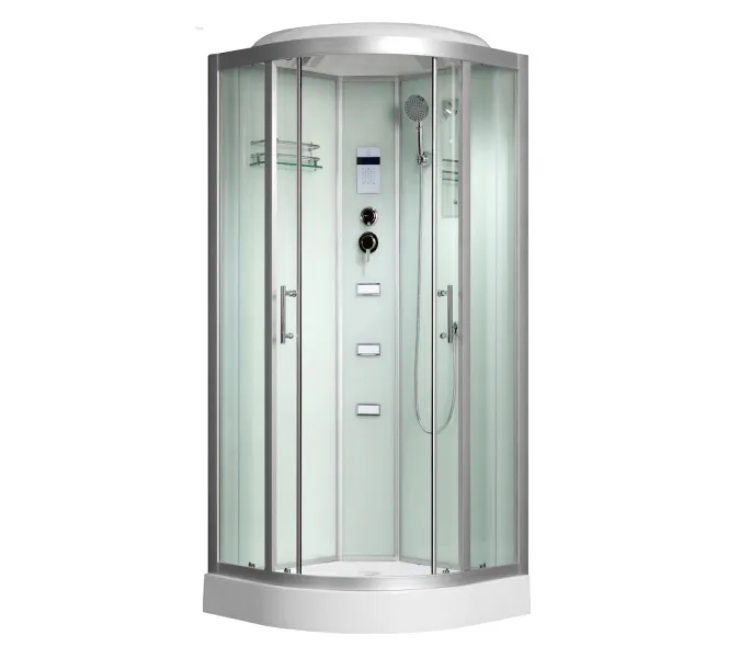 Кабина изготовлена из высококачественных материалов, таких как: санитарно-технический акрил, высокопрочный алюминий и закаленные ударопрочные стекла, толщиной 6 мм. Плавность хода дверей гарантируют, 8 двойных металлических роликов, а их равномерное примыкание к друг другу - вертикальные магнитные уплотнители.Поддон кабины усилен металлическим каркасом на регулируемых опорах и выдерживает нагрузку до 300 кг. На стенках и центральной стойке, расположились: переключатель и смеситель с керамическим картриджем, сенсерный пульт управления, ручная лейка с самоочищающимися резиновыми джетами, три форсунки гидромассажа, зеркало, сидение в поддоне и просторная полочка для шампуней и гелей. А на крыше, нашёл себе место, широкий тропический душ, диодная лампа, вентилятор и динамик под FM радио.