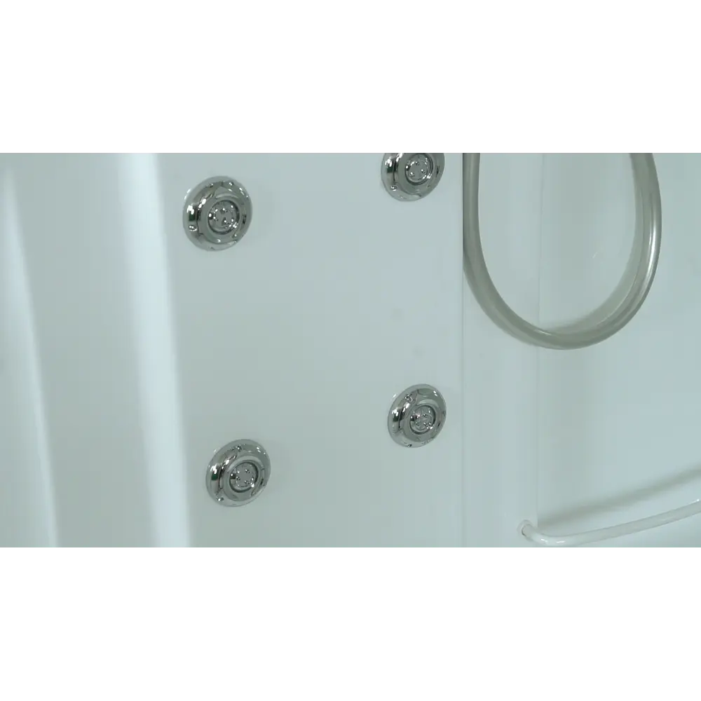 Комплектация: сенсорная панель управления,FM радио; стеклянные полочки; зеркало; гидромассаж спины (12 джет); верхний душ; ручная лейка на регулируемой по высоте штанге; электр. вентиляция; подсветка (возможна комплектация в двух вариантах, интегрированная в троп.душ или отдельная, в зависимости от поставки), смеситель; сидение