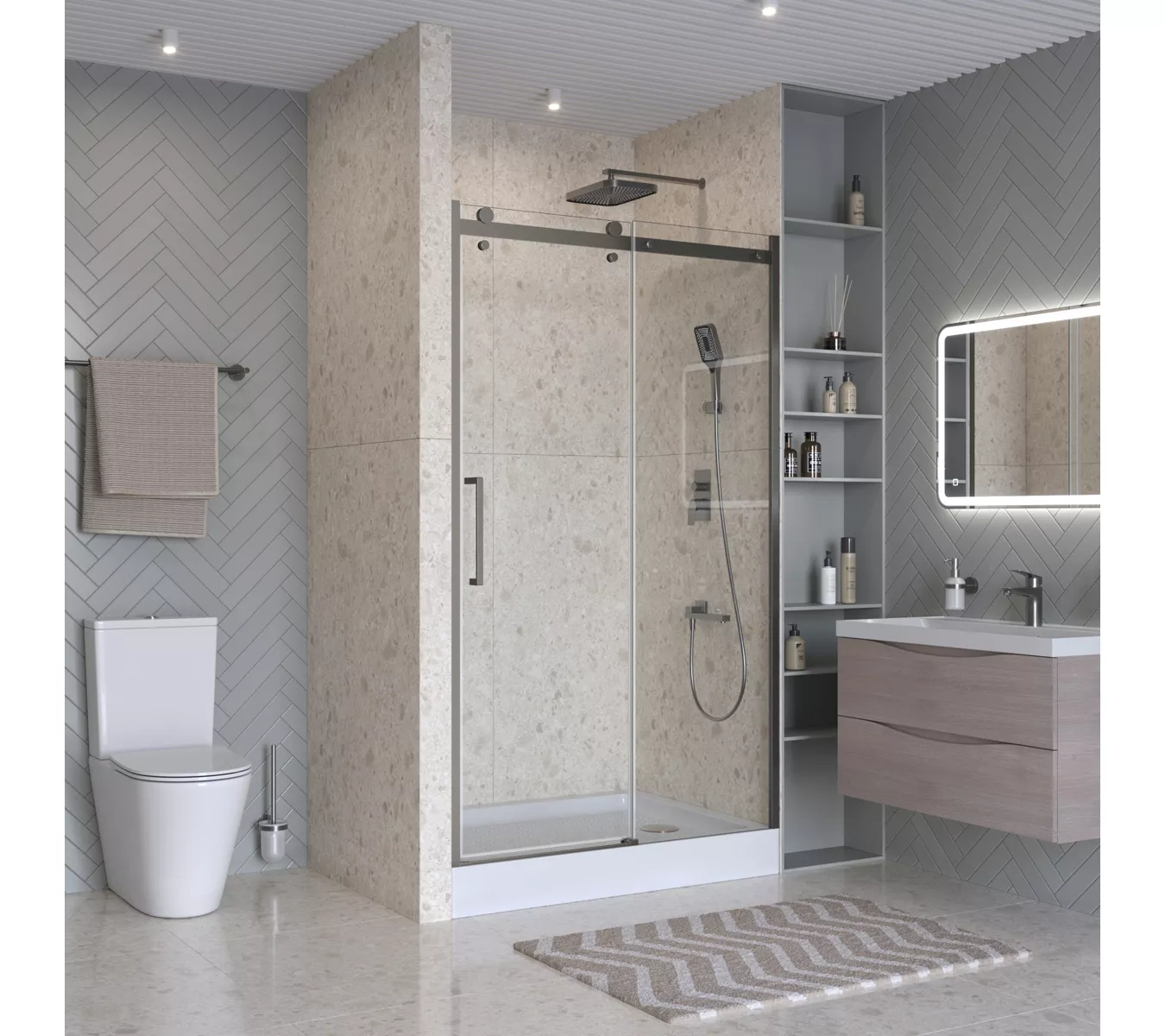 Коллекция BelBagno Marino 2 отличается строгим, минималистичным дизайном с простыми формами, узкими профилями и эффектными парящими дверьми. Такая концепция создаёт ощущение безупречного порядка, сохраняет максимум естественного света и дарит интерьеру чувство свободы и лёгкости.