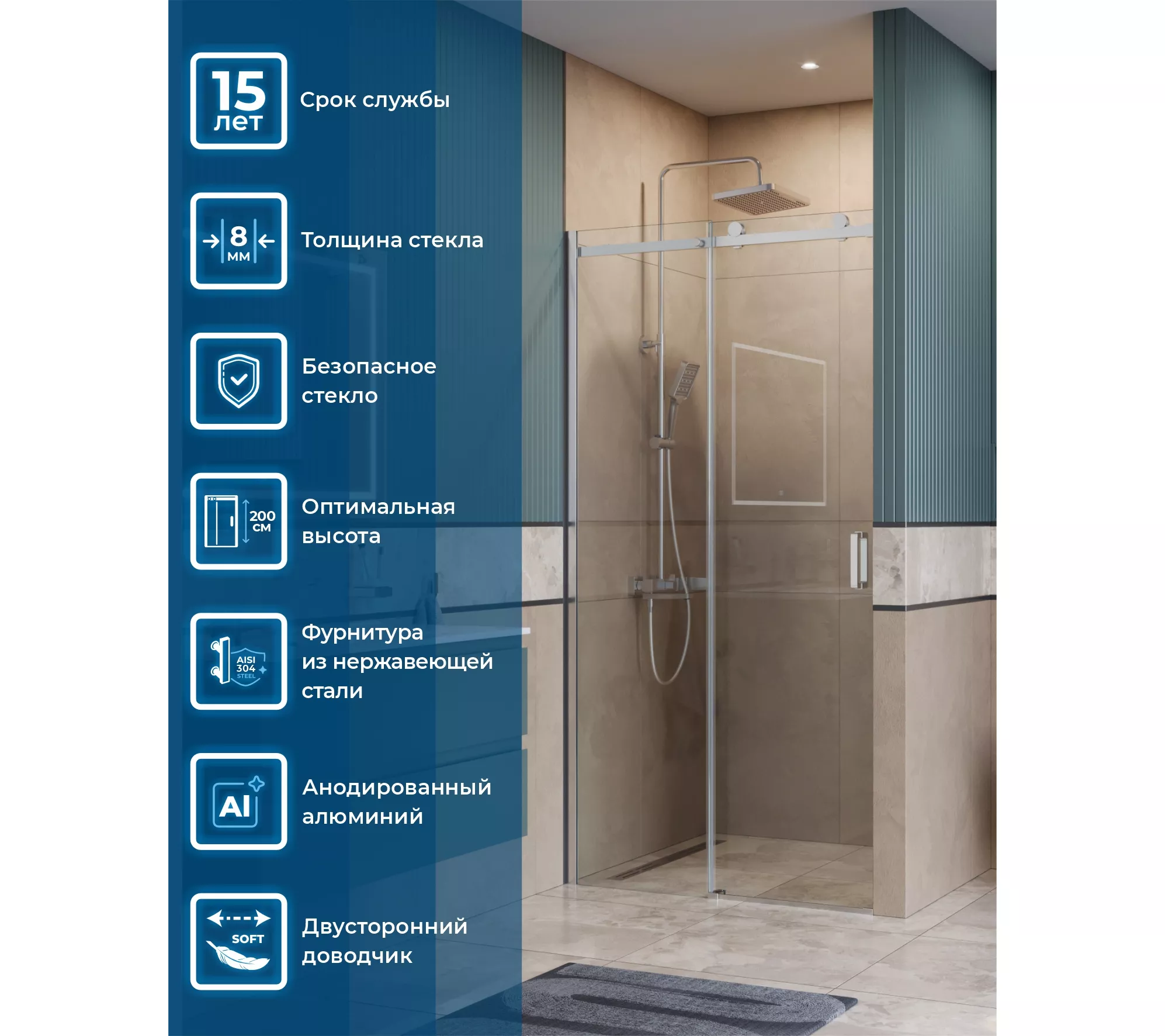 ● Коллекция предлагает три конфигурации, идеально подходящие для различных планировок ванных комнат: квадратную (A-1), прямоугольную (AH-1) и дверь в нишу (BF-1). Все они имеют высоту 2000 мм и доступны в наиболее востребованных размерах.