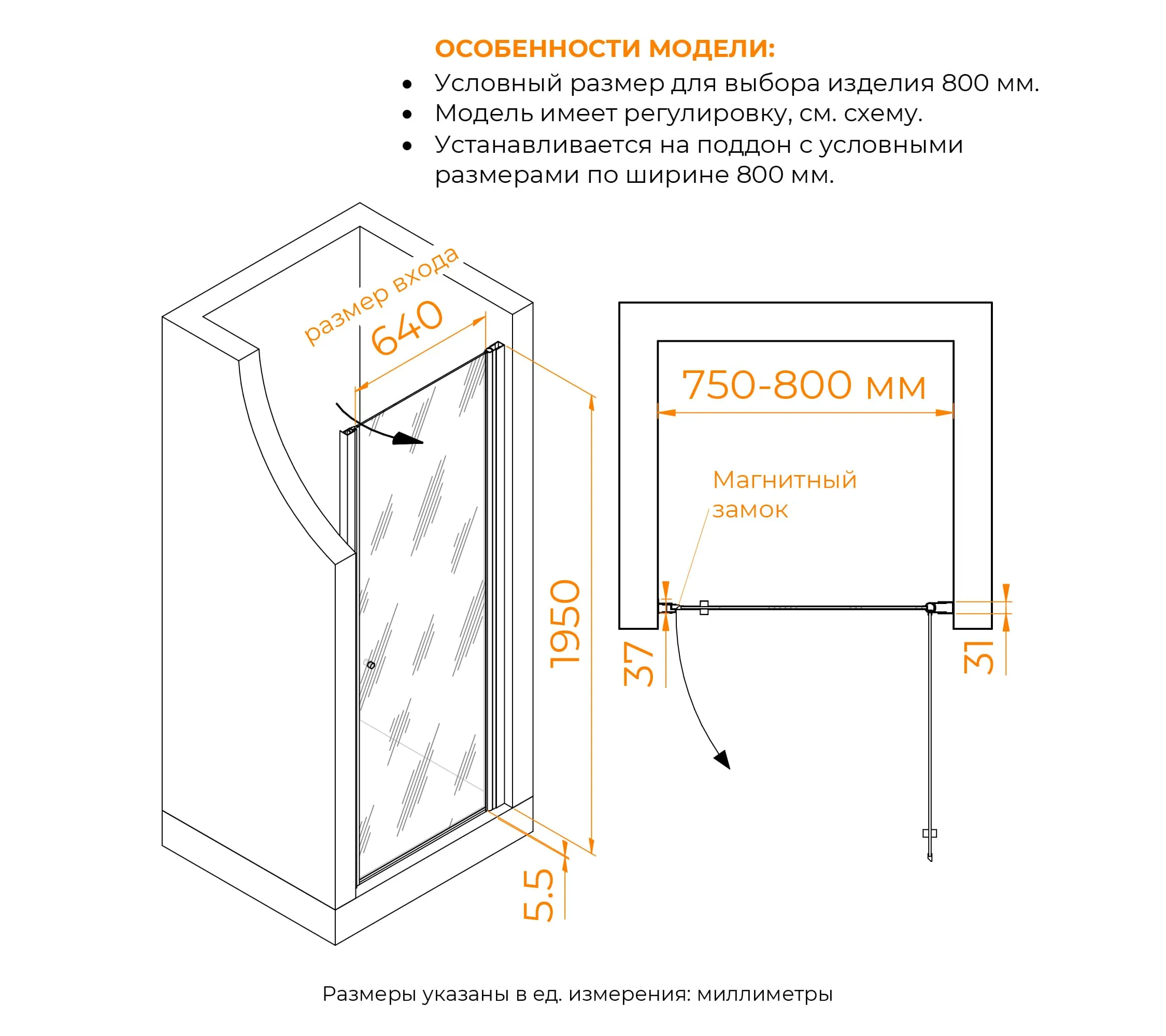 Одним из главных преимуществ душевой двери Dolphin TN-03 является использование высокопрочного закаленного стекла, которое обеспечивает надежную защиту и безопасность в процессе использования изделия. Высота двери составляет 1950 мм, что позволяет подобрать оптимальный размер для вашей ванной комнаты.