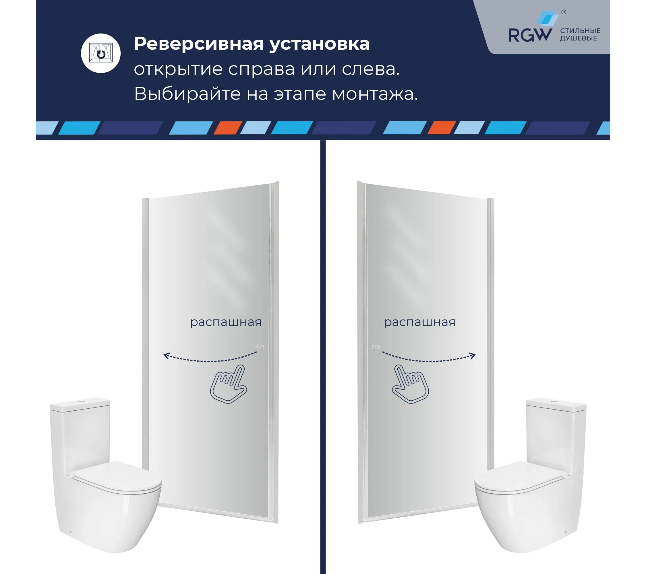 Профиль двери выполнен в стильном хромовом цвете, что придает ему элегантный и современный внешний вид. Конструкция дверей распашные, что дает возможность эффективно использовать пространство ванной комнаты. Двери оборудованы регулируемым профилем, что позволяет настроить двери под размеры вашей ванной комнаты.