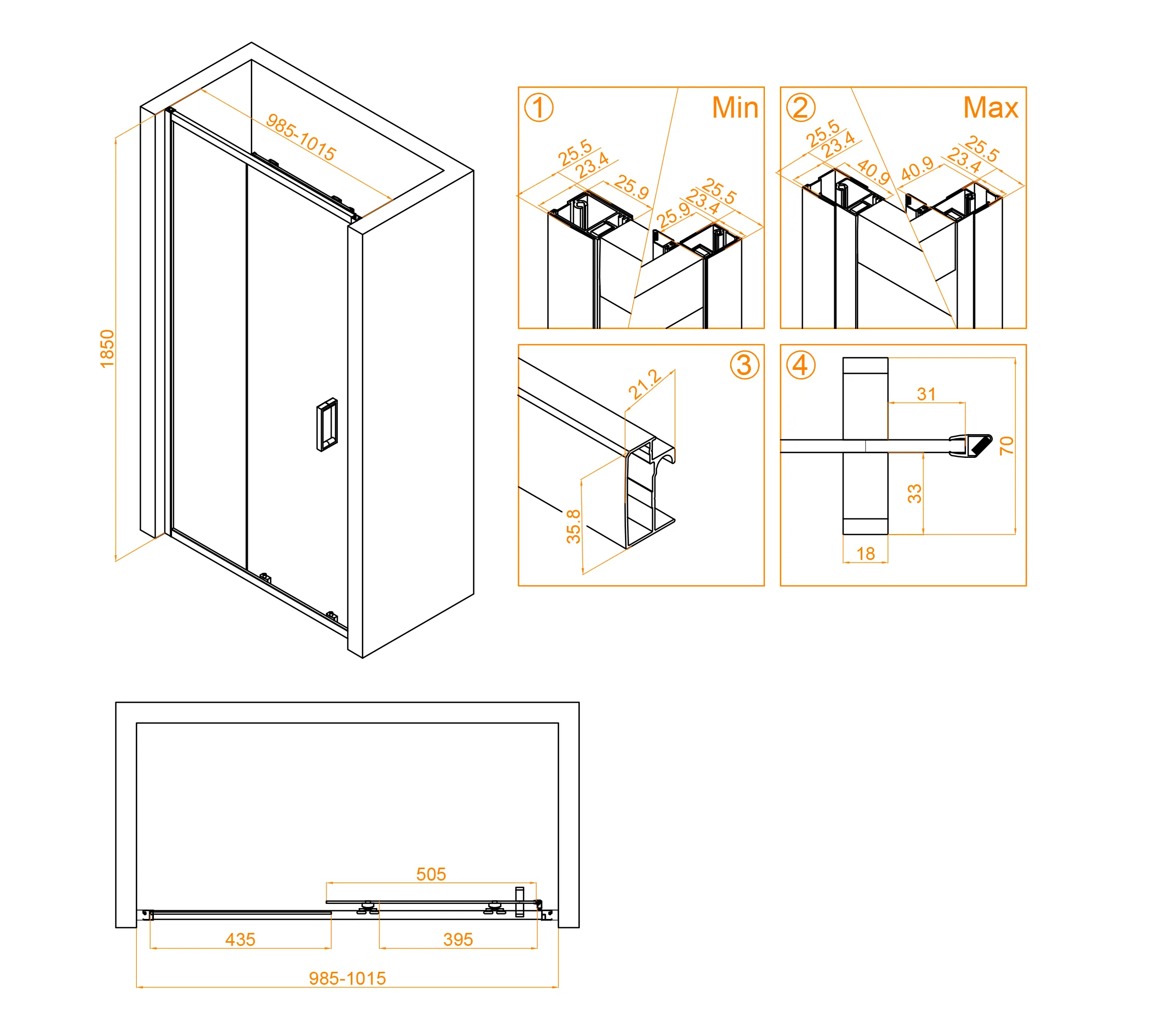 Размеры с диапазоном регулировок