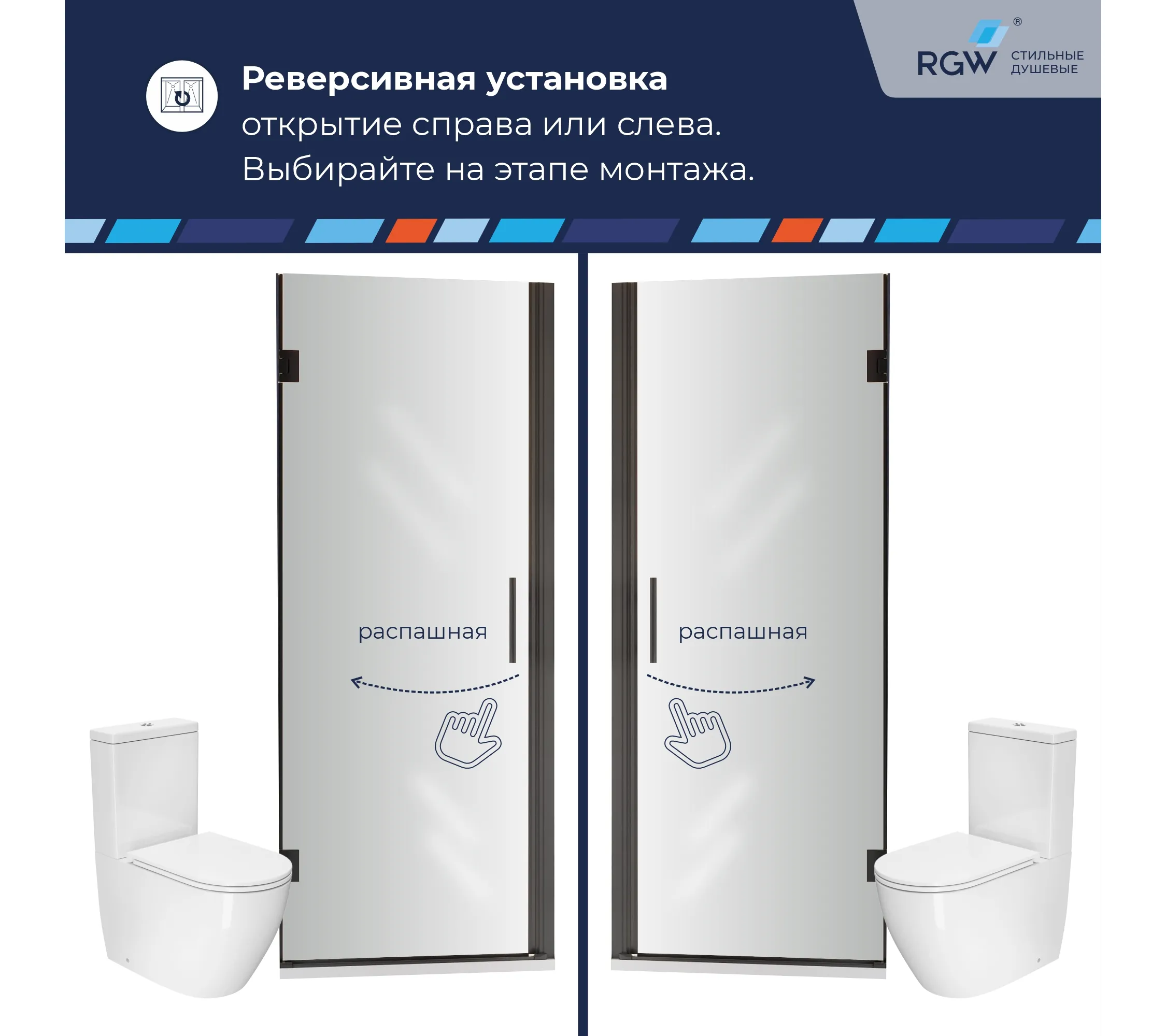 Душевая дверь распашная. Трап или поддон приобретается отдельно.