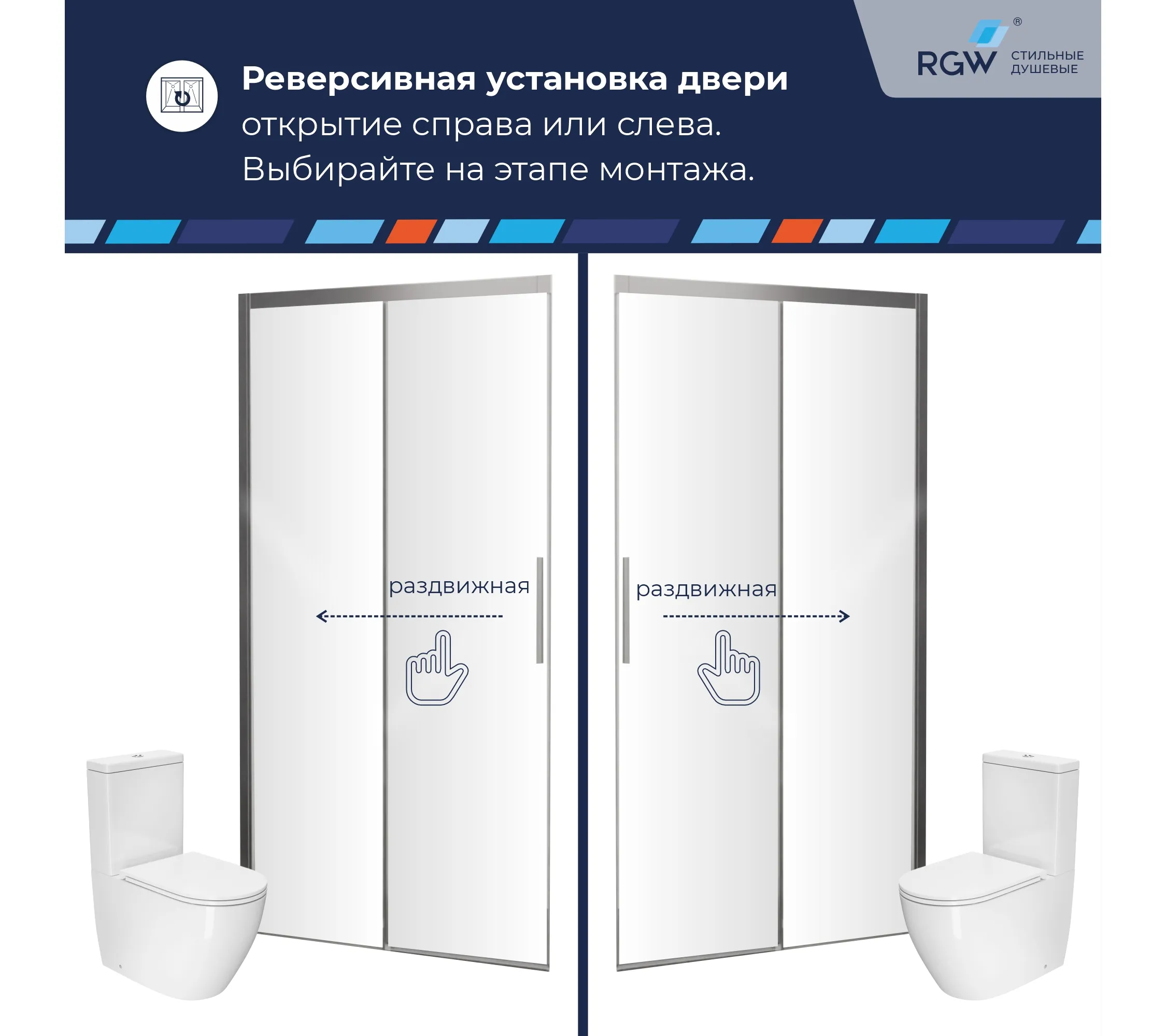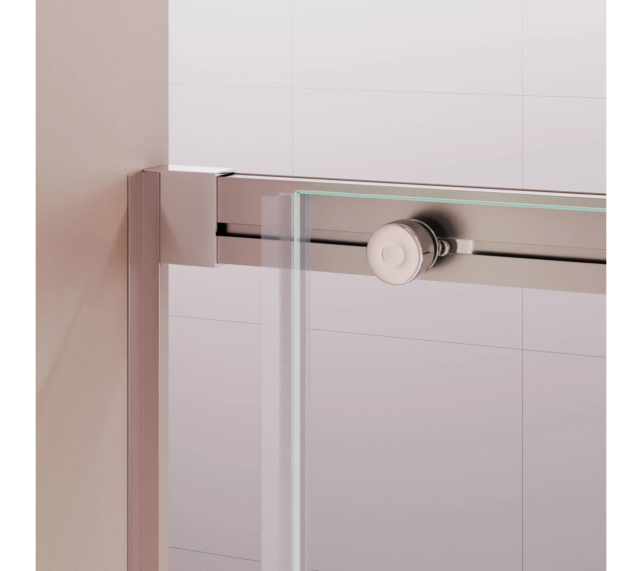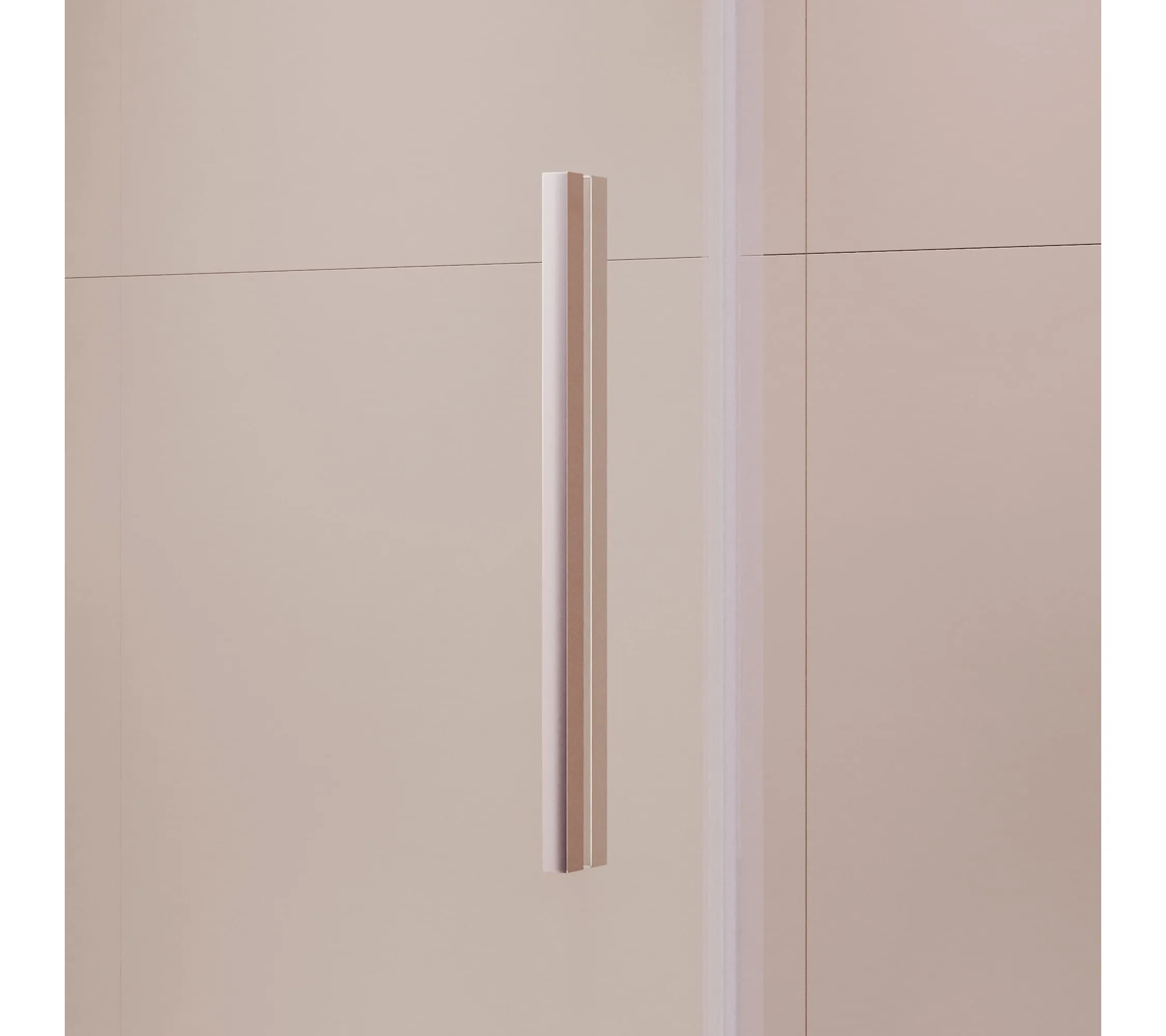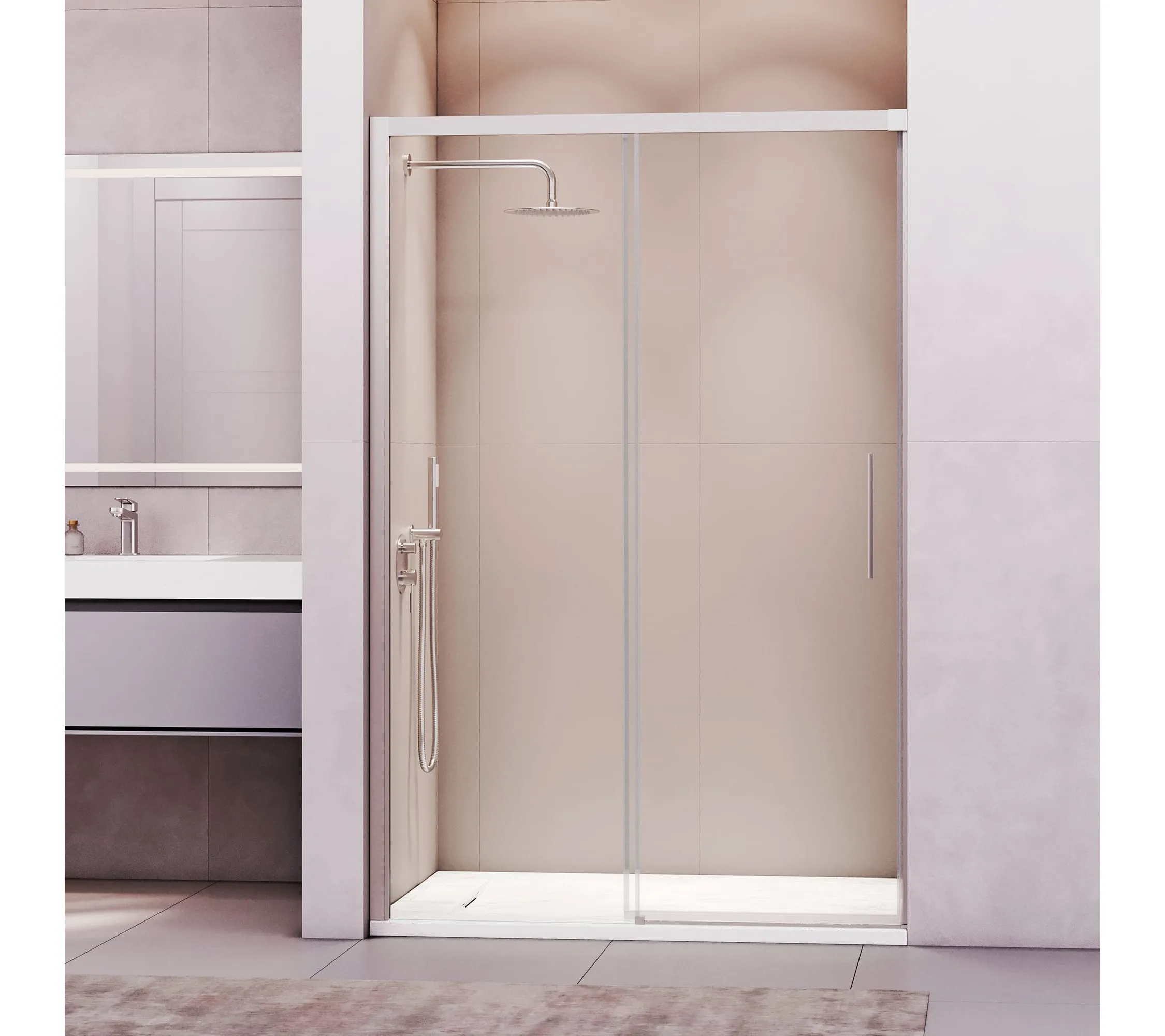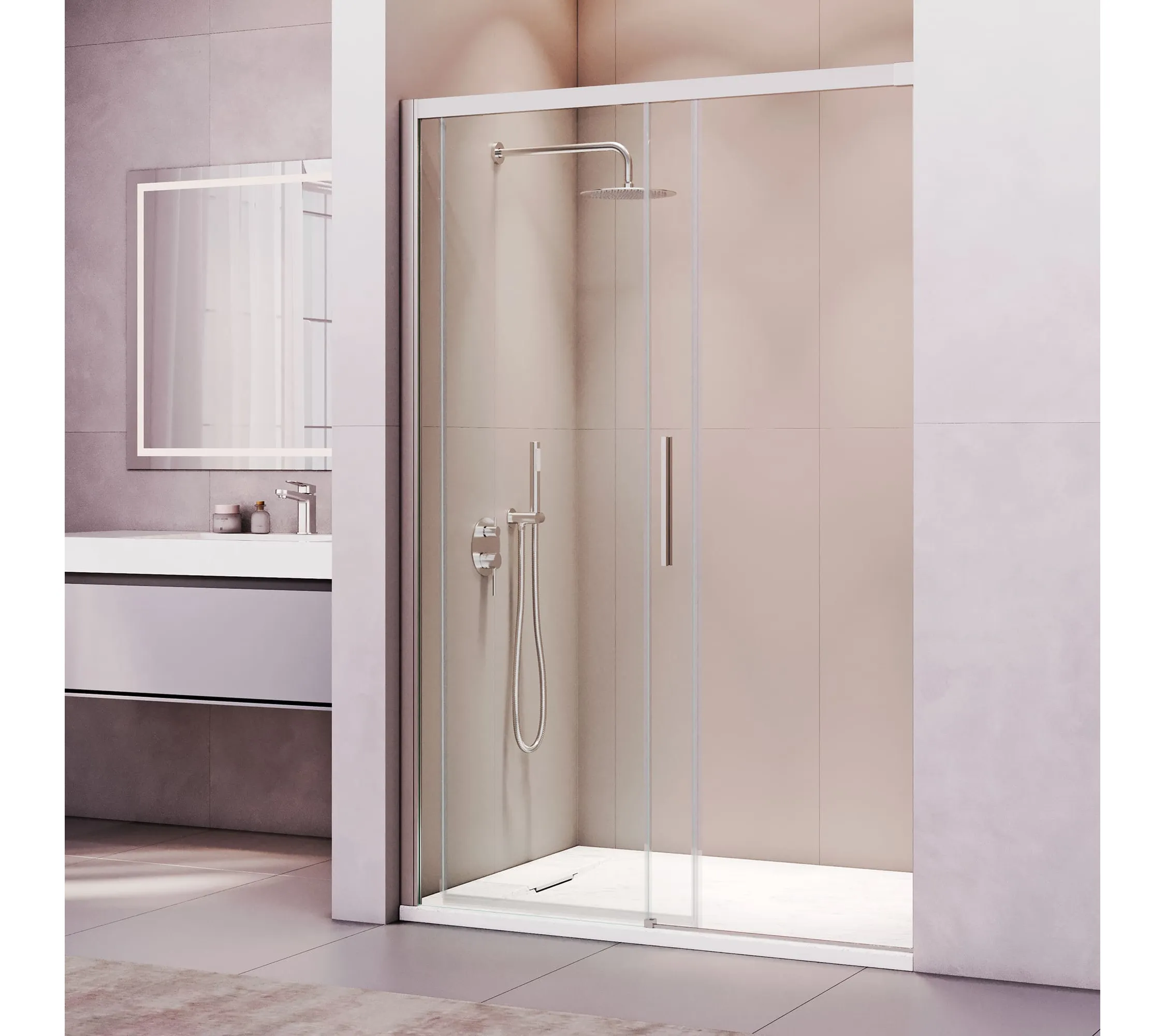 Душевая дверь с закаленным прозрачным стеклом 6 мм, с роликовым механизмом оснащенные автодоводчиком. Поддон приобретается отдельно.