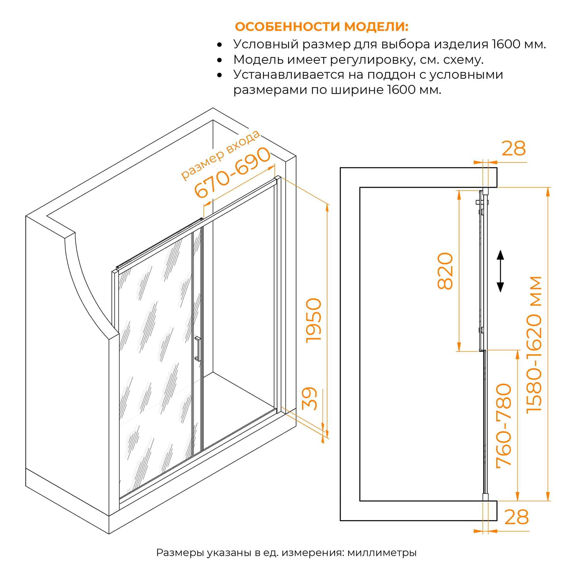 Размеры с диапазоном регулировок