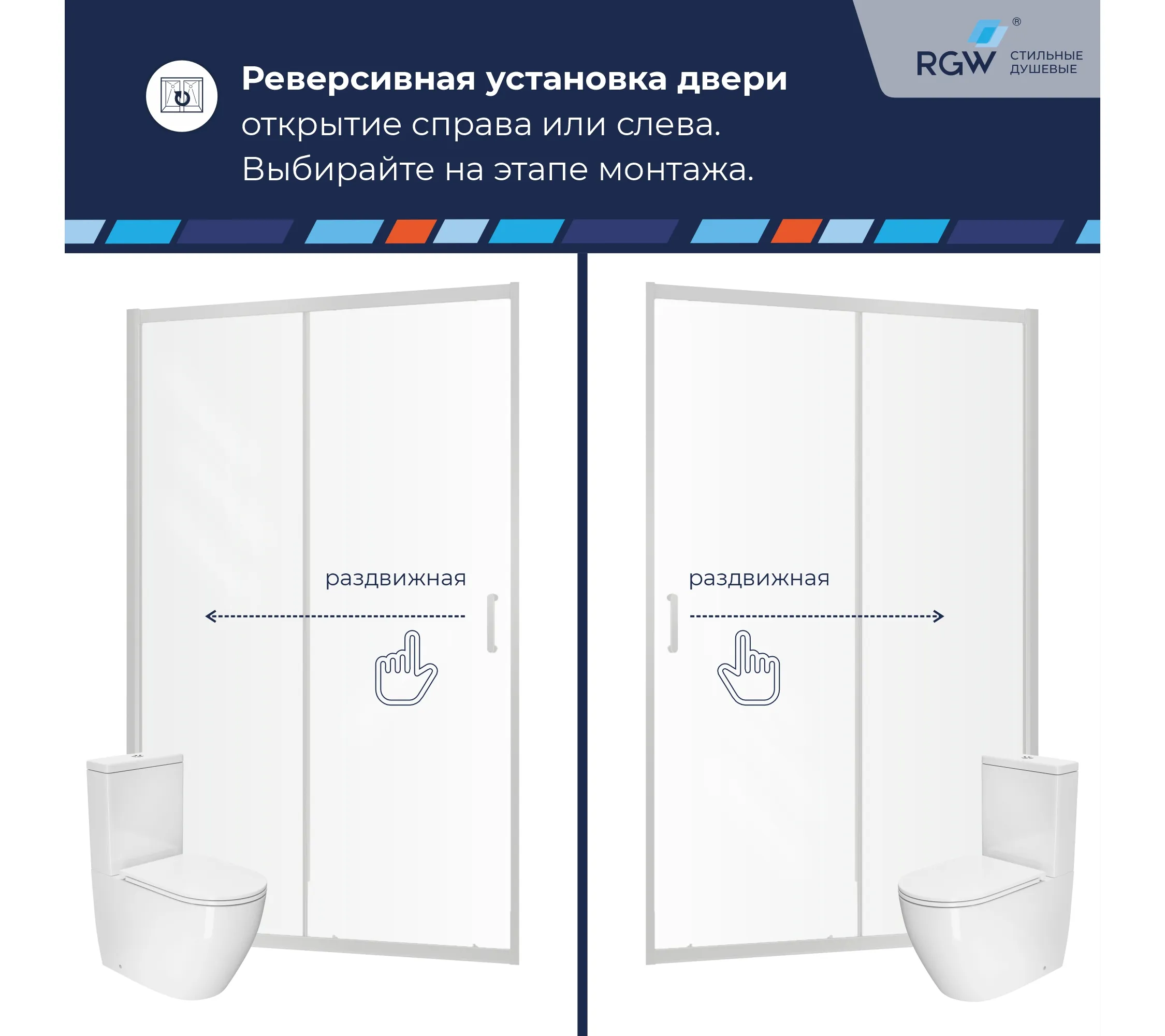 Душевая дверь раздвижная RGW PA-14. Ручка скоба из цинкового сплава, двойные верхние ролики. двойные отстегивающиеся нижние ролики, крышки верхнего профиля. Трап или поддон приобретается отдельно.
