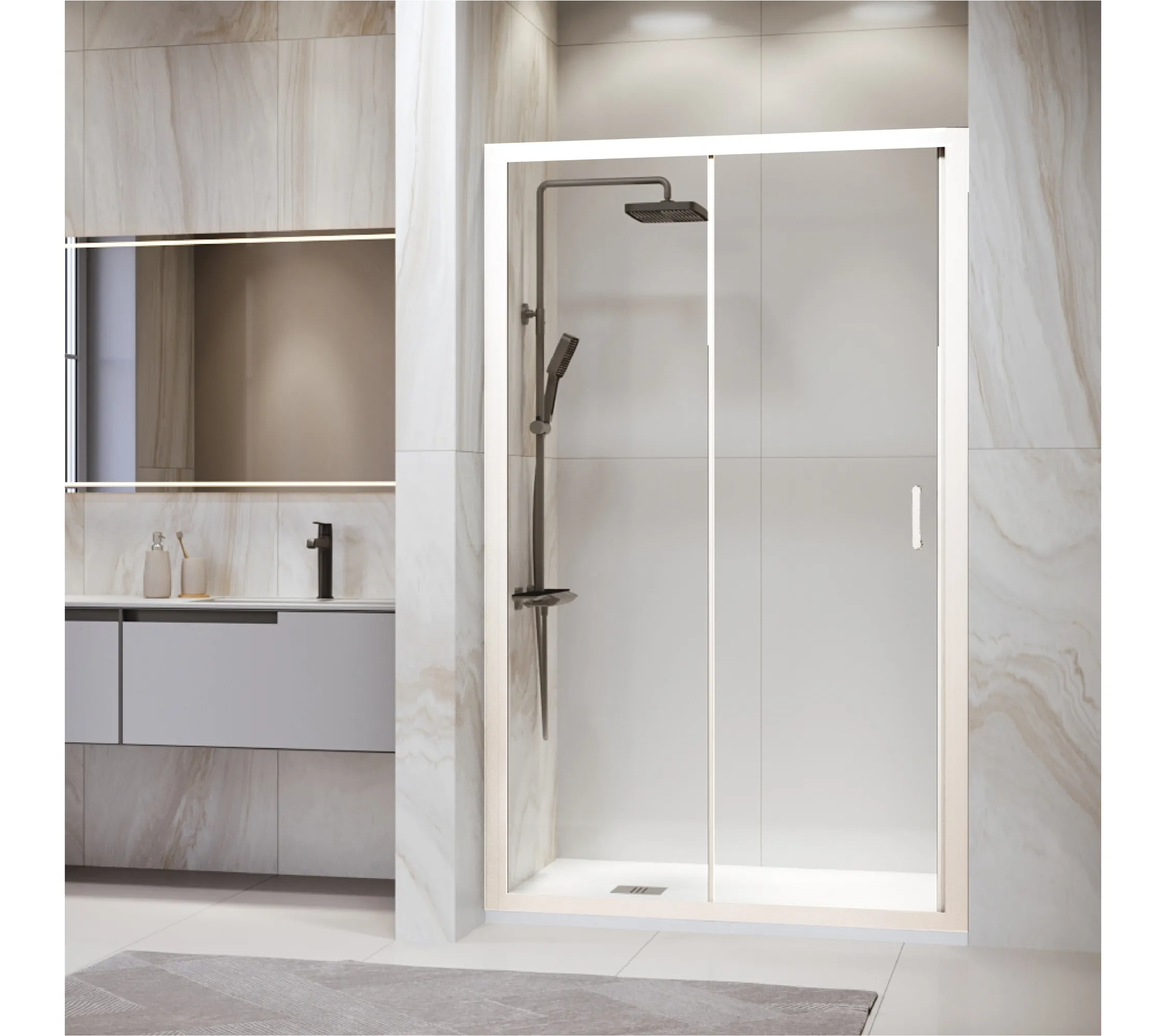 Раздвижные двери придают легкость и изящество, а также максимальный комфорт во время гигиенических процедур. Ручка двери выполнена из цинкового сплава, а толщина стекла 6 мм стабильное и надежное ежедневное использование. Технология Easy Clean защищает поверхности и избавляет от известкового налета.