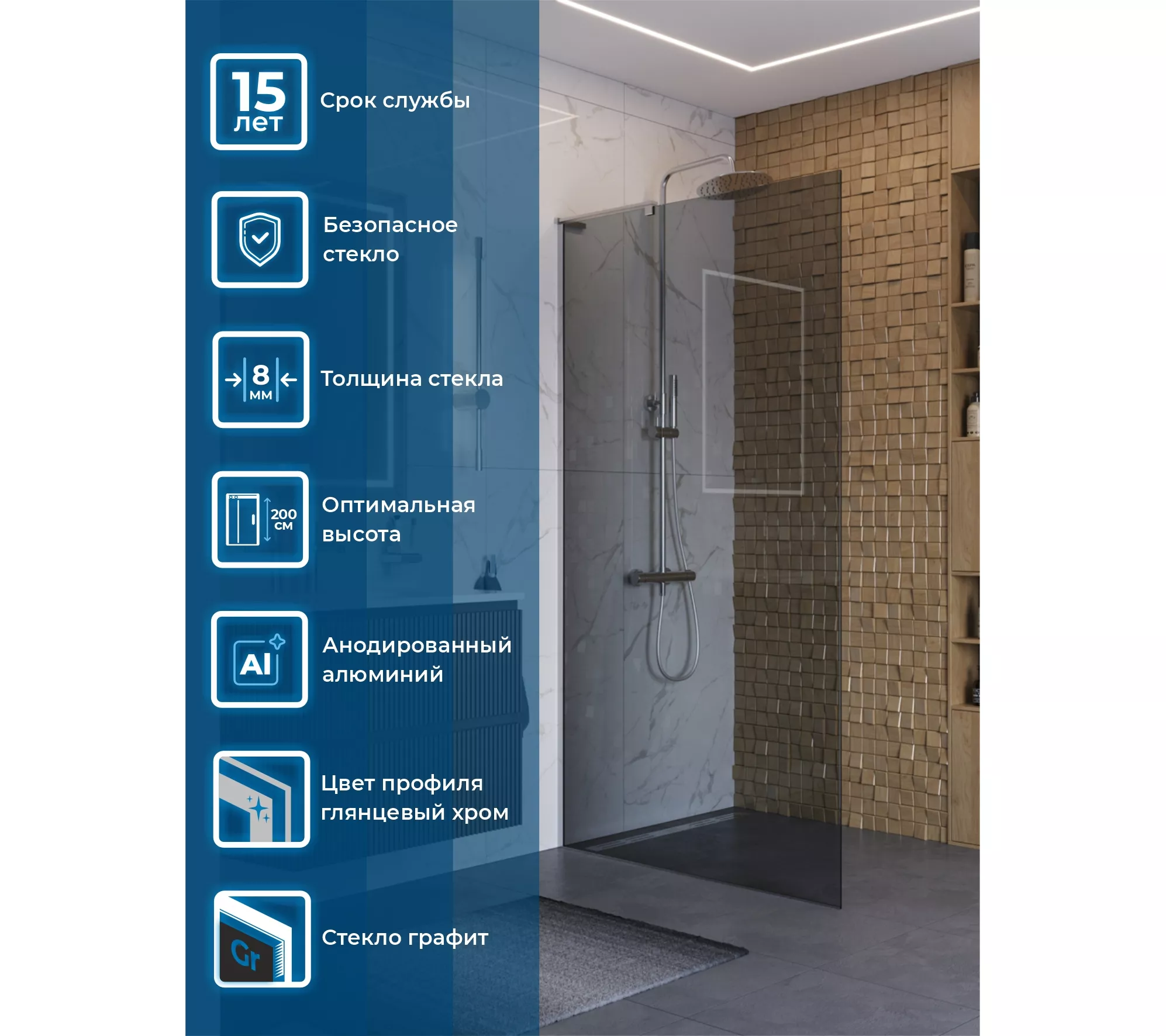 Душевая перегородка BelBagno UNO-L-1-TB/-GR-Cr тонир/хром