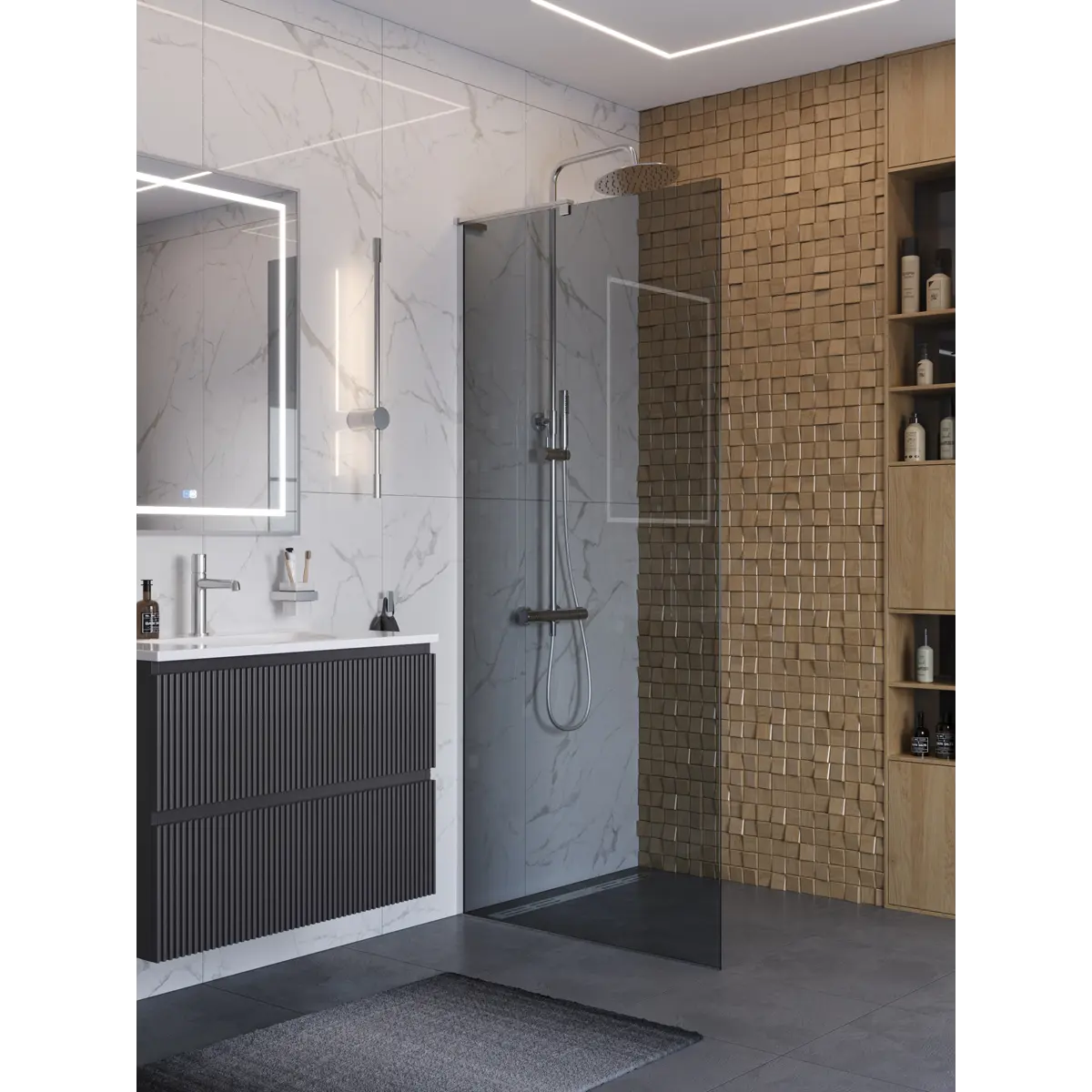 ● Широкий диапазон размеров от 60 до 110 см с шагом в 10 см позволяет найти идеальное решение для ванных комнат любого метража. Высота перегородок составляет целых 200 см — как в премиальных коллекциях.