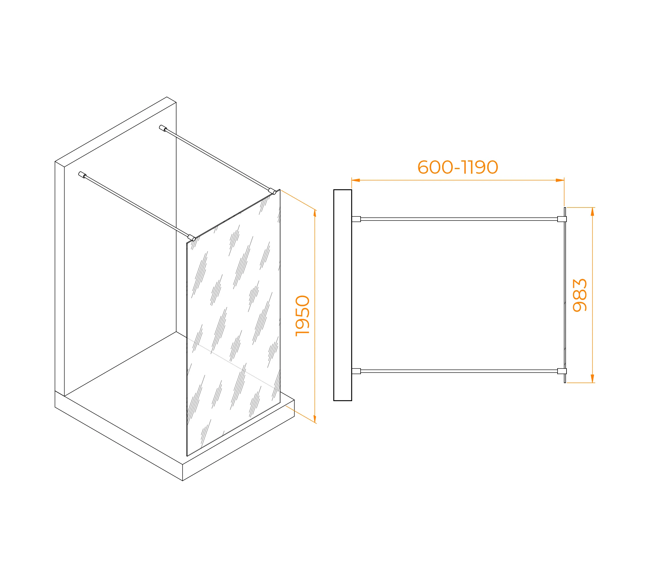 Дополнительно:душевая перегородка стационарная. Два кронштейна RGW O-202CP длинной 730-1200 мм.Трап или поддон приобретаются отдельно.