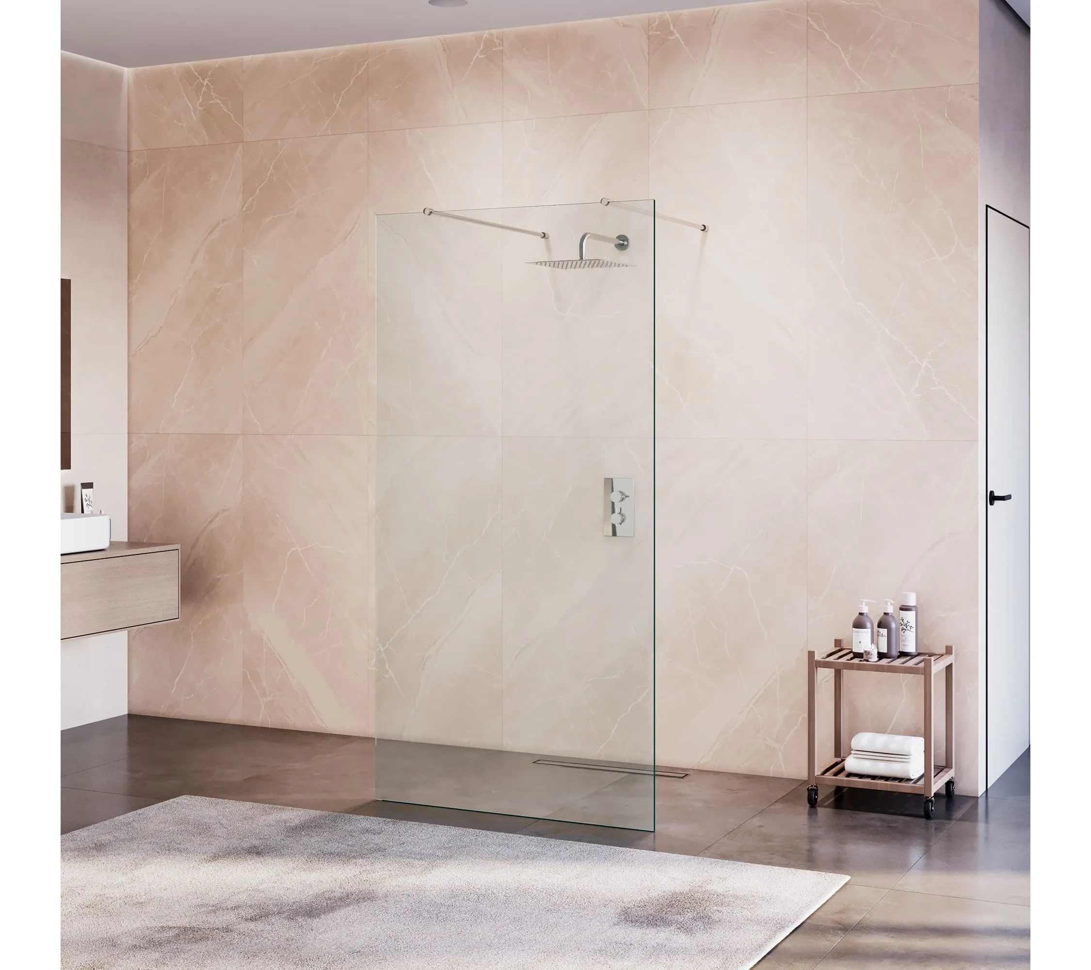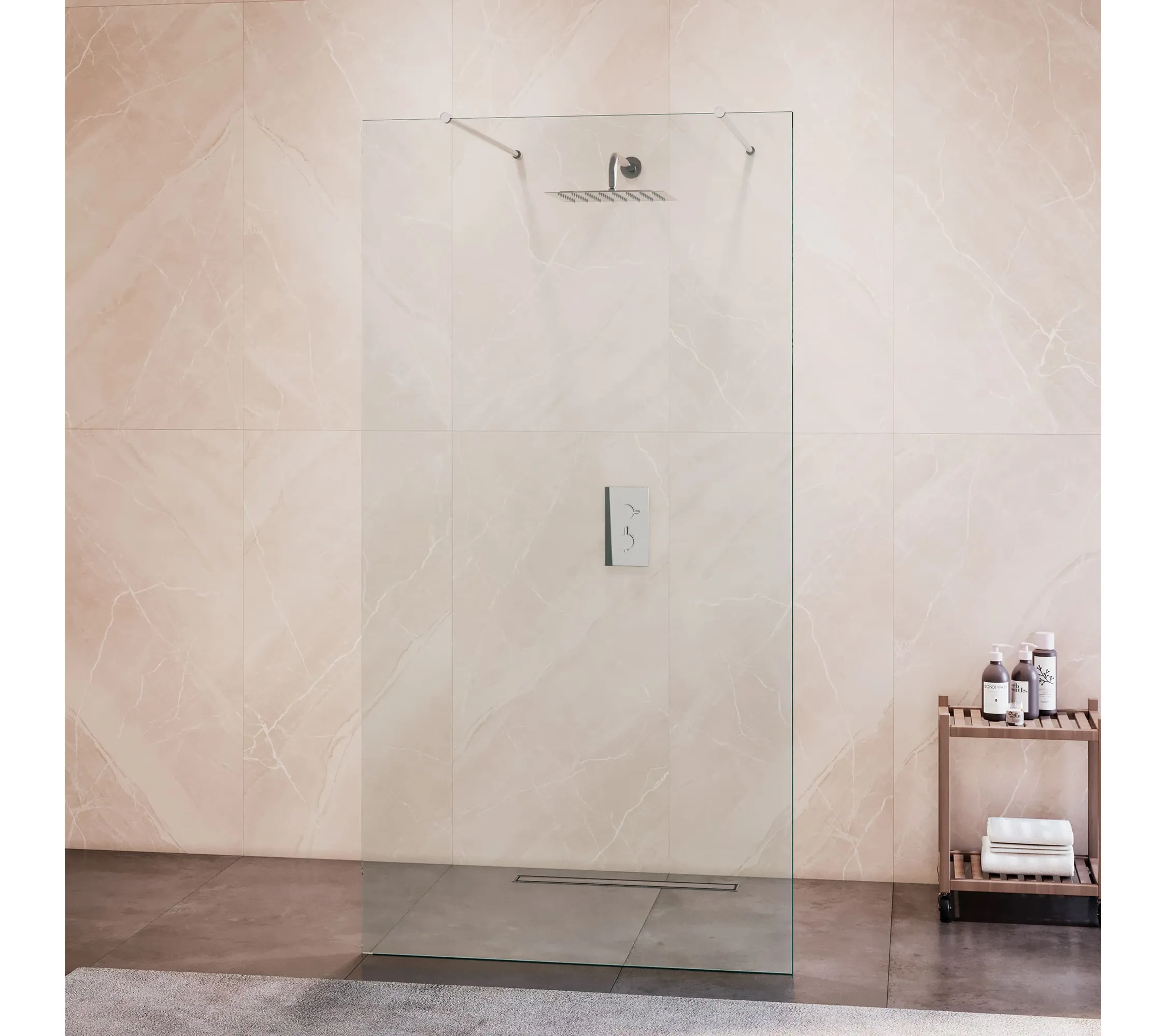 Представляем Вашему вниманию лаконичную перегородку для душа из серии Walk In. Данная модель представлена в условных размерах. Надежная толщина стекла-8мм, рассчитанная на активно-агрессивное использование, подойдет для самых взыскательных и требовательных. В изделии выглядит основательно и дорого.
