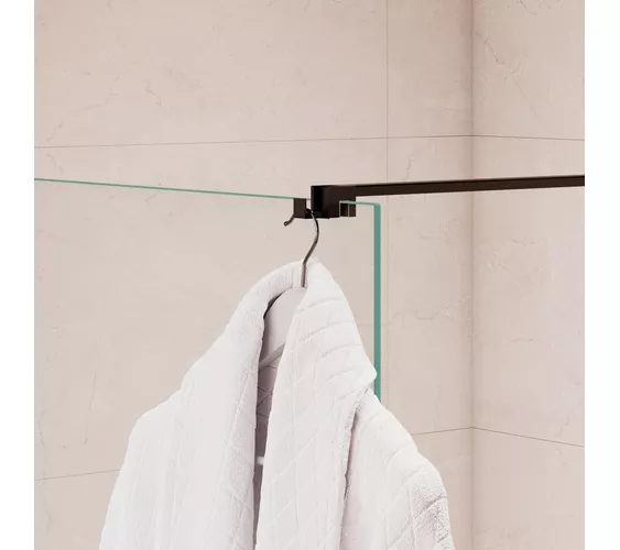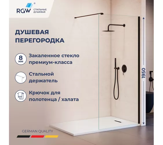 Душевая перегородка из стекла на профиле к стене бескаркасного типа с открытым входом в душ RGW WA-210 и вешалкой крючкообразного типа — Это современное решение в душе, позволяющее эффективно использовать штангу-держатель стекла как вешалку для полотенца или халата, при этом оно не только эффективно зонирует пространство, защищая остальную часть санузла от брызг, но и визуально расширяет вашу ванную комнату, наполняя ее светом и простором.