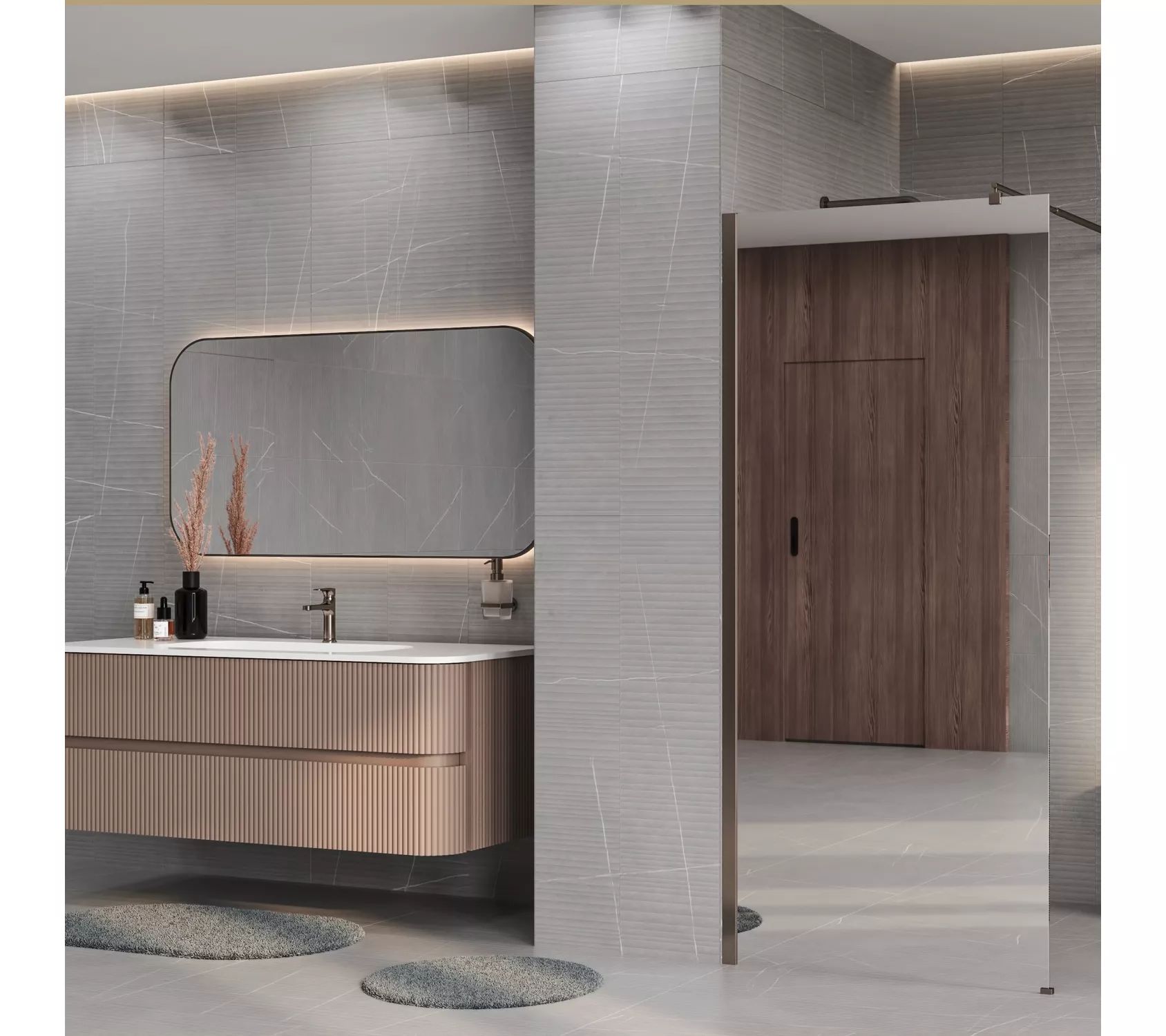Душевая перегородка WasserKRAFT Rur 30W RG-MR зеркальное/розовое золото