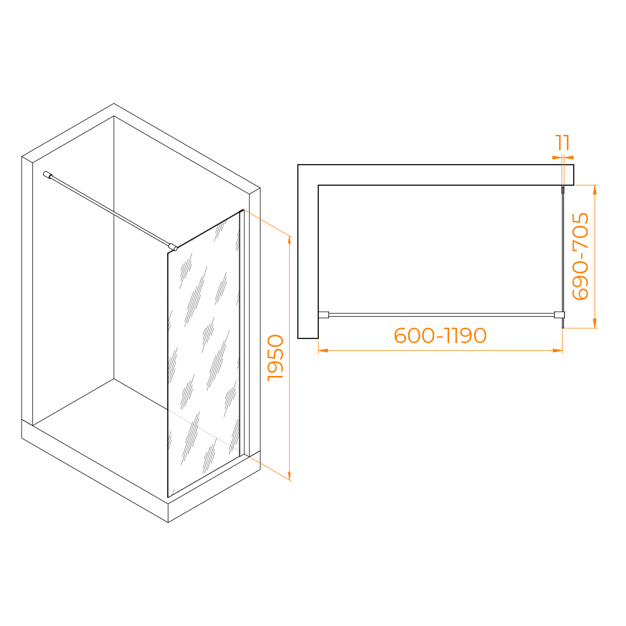 Душевая перегородка неподвижная RGW WA-002. Длина кронштейна 1200 мм. Трап или поддон приобретается отдельно.