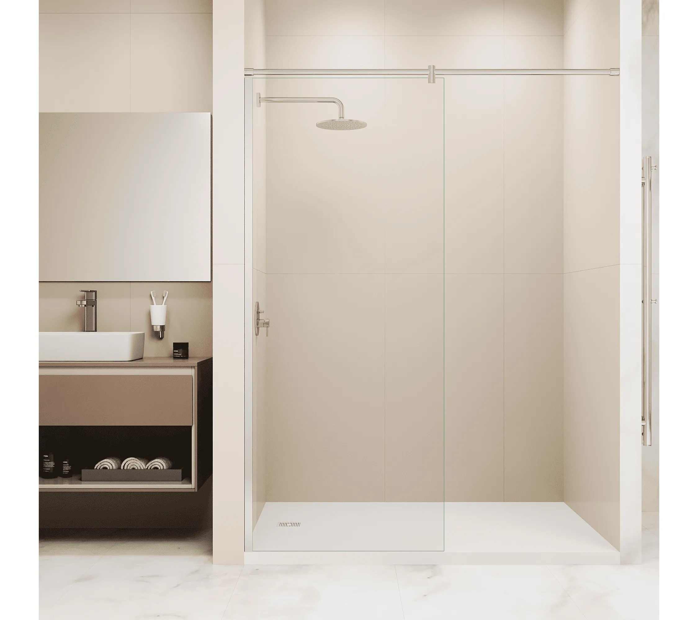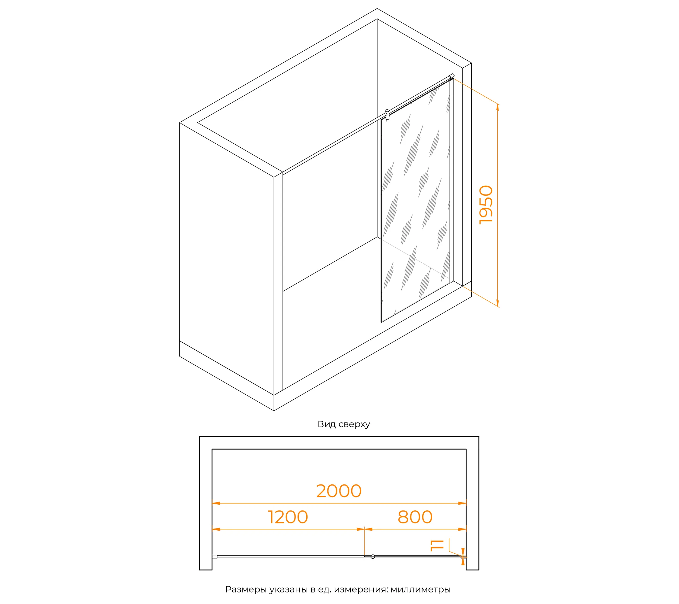 Душевая перегородка стационарная. Длина кронштейна 2200 мм. Стекло 6 мм. Трап или поддон приобретается отдельно.