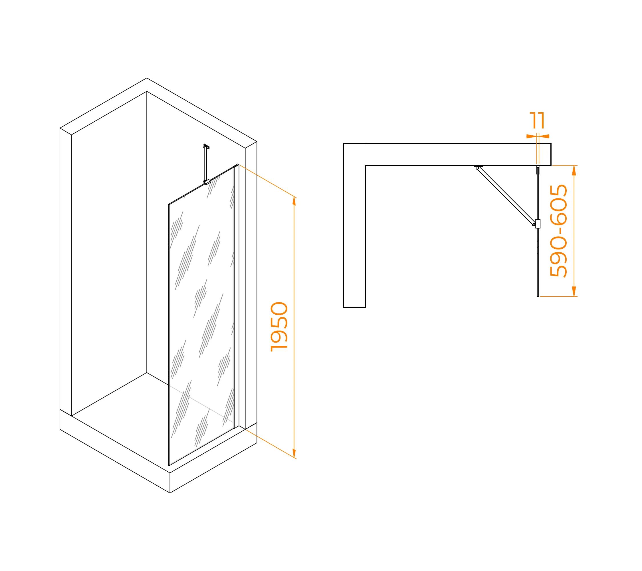 Душевая перегородка стационарная с боковым держателем RGW O-205 B