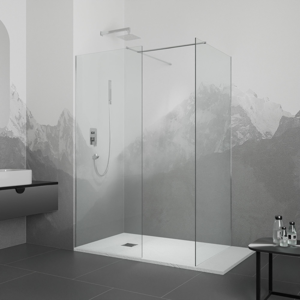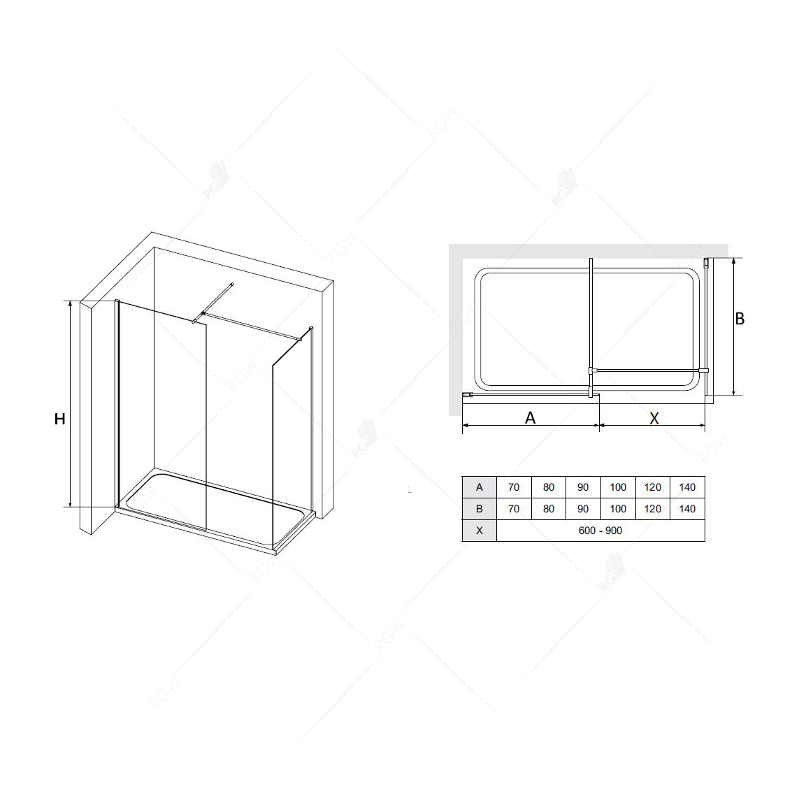 Душевая перегородка неподвижная. Состоит из двух RGW WA-10 и соединительного коннектора RGW S-1220. Длина кронштейна 1000 мм. Трап или поддон приобретается отдельно.