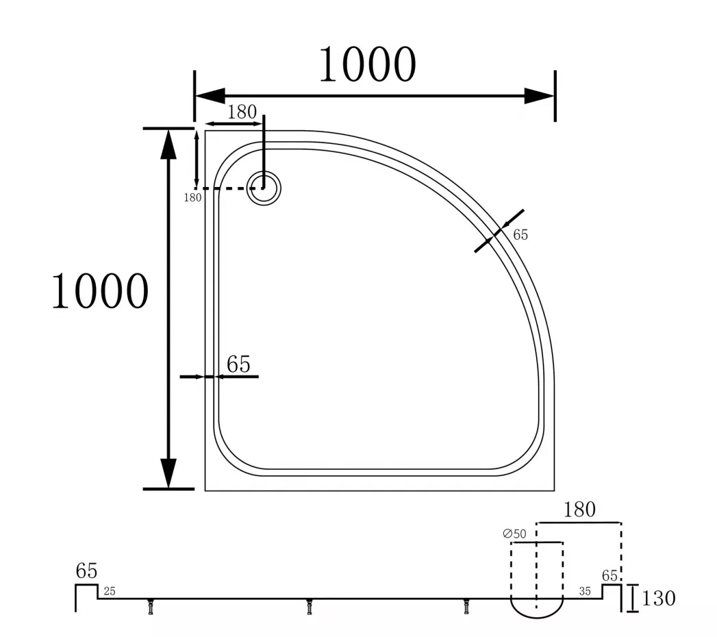 Душевой поддон ABBER AD3A100 100х100 четверть круга, акриловый, белый