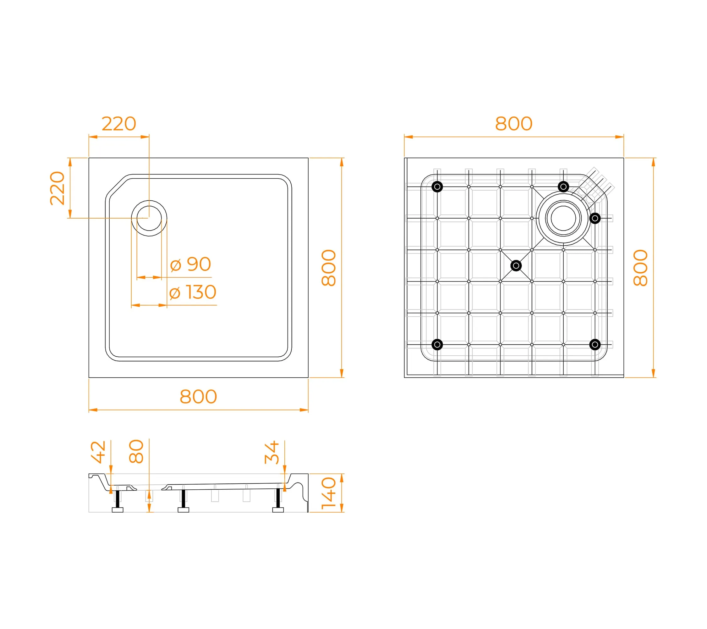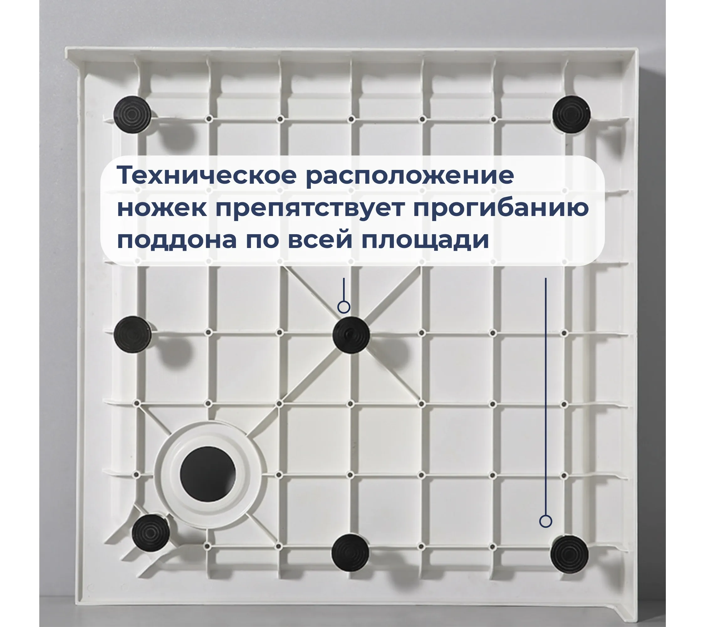 Поддоны оснащены литыми экранами, что позволит скрыть сливную систему, а наличие в комплекте ножек с регулировкой высоты, позволит быстро и легко установить поддон и начать его использовать.
