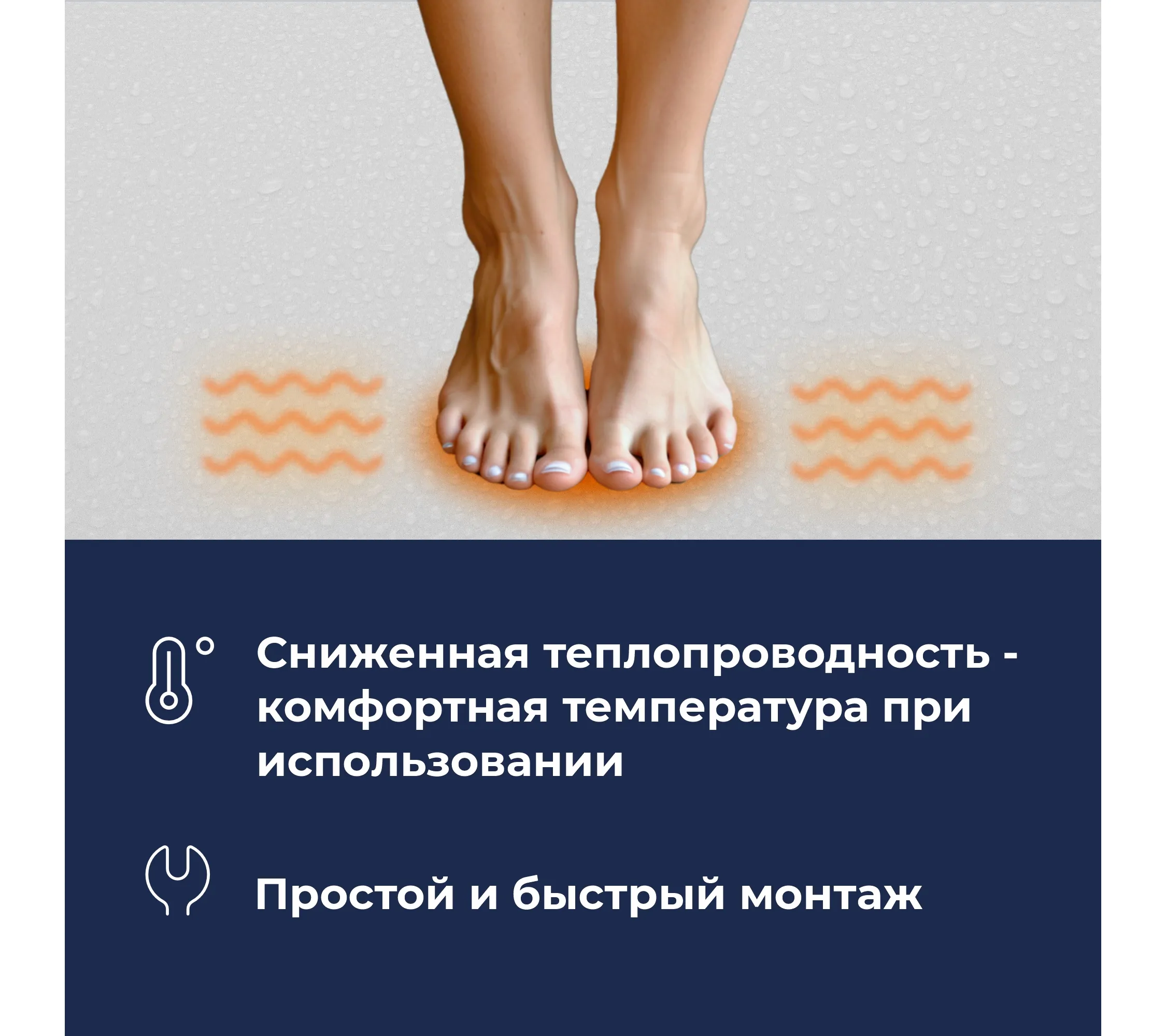 Этот материал прочнее акрила, а специальная структура волокон и конструкция поддонов способствуют высокой устойчивости к механическим и весовым нагрузкам до 180 кг, а также обеспечивает срок эксплуатации не менее 15 лет.