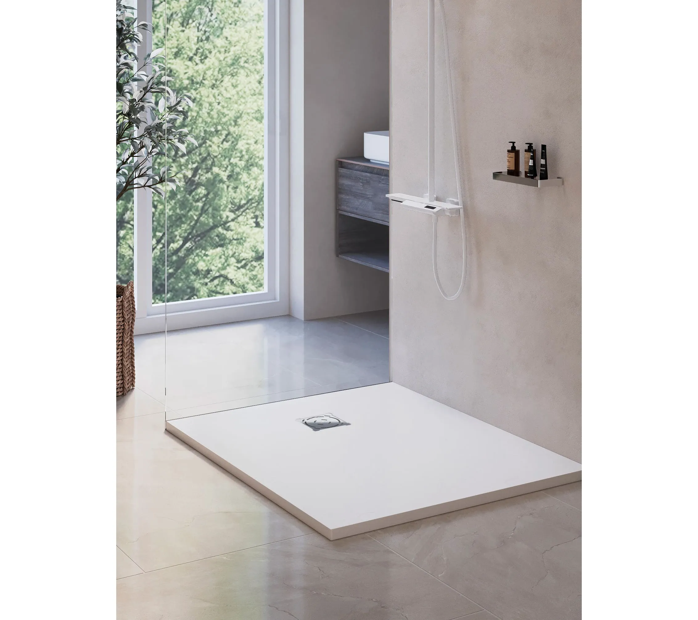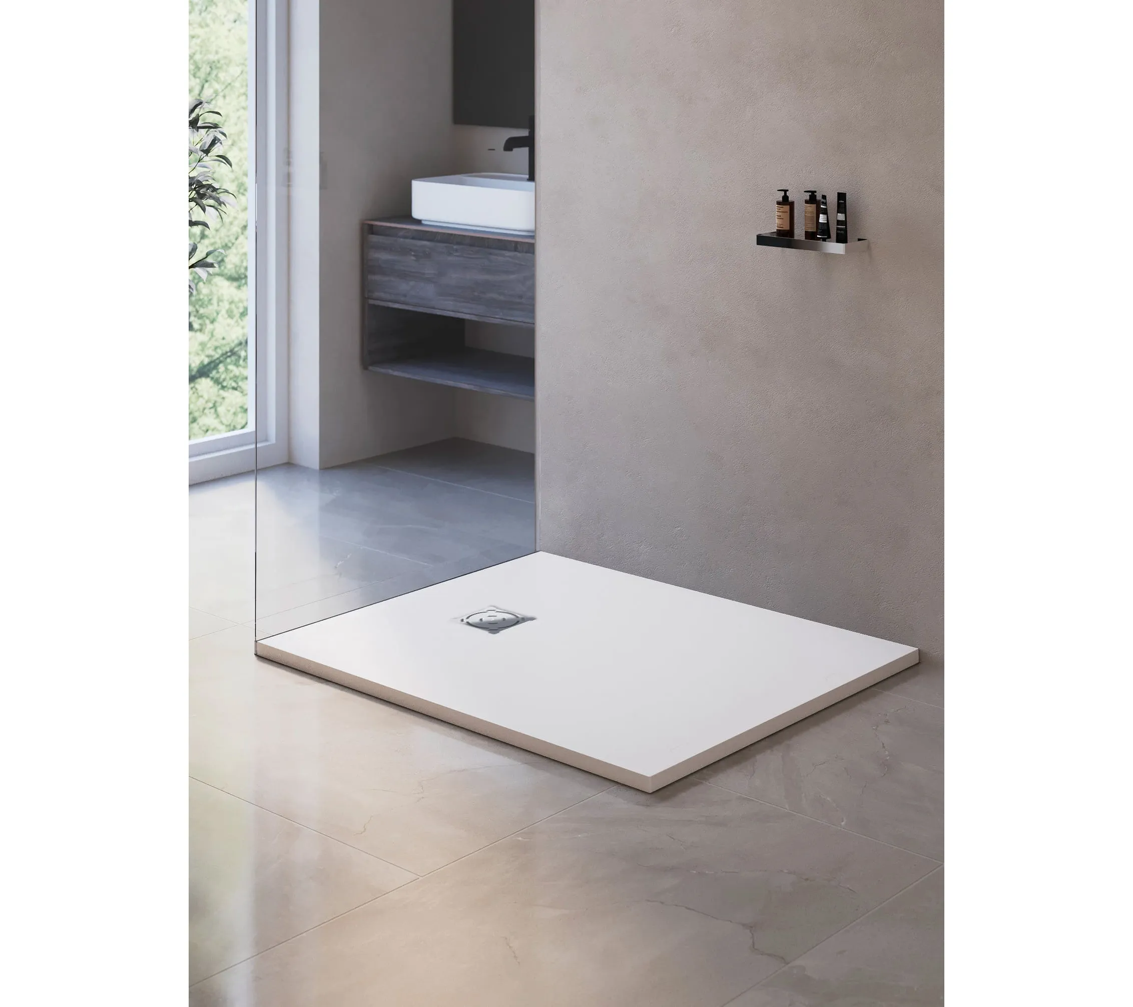 Душевые поддоны из искусственного камня, обладают высокой прочностью и долговечностью. Материал поддона позволяет резку по индивидуальным размерам. Поверхность поддонов рельефная, антискользящая. Нагрузка на поддон до 300 кг.