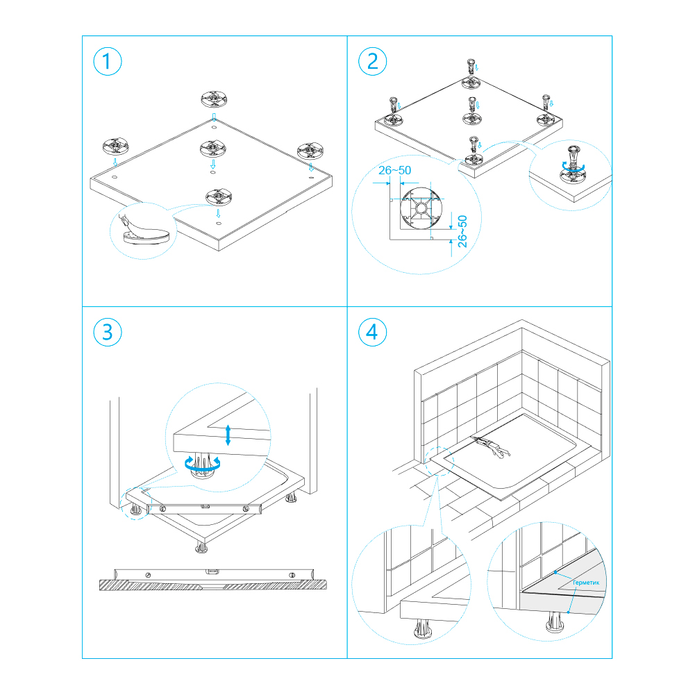 Возможна установка на ножки RGW N-1: Поддоны длинной до 1100 мм включительно комплект RGW N-08