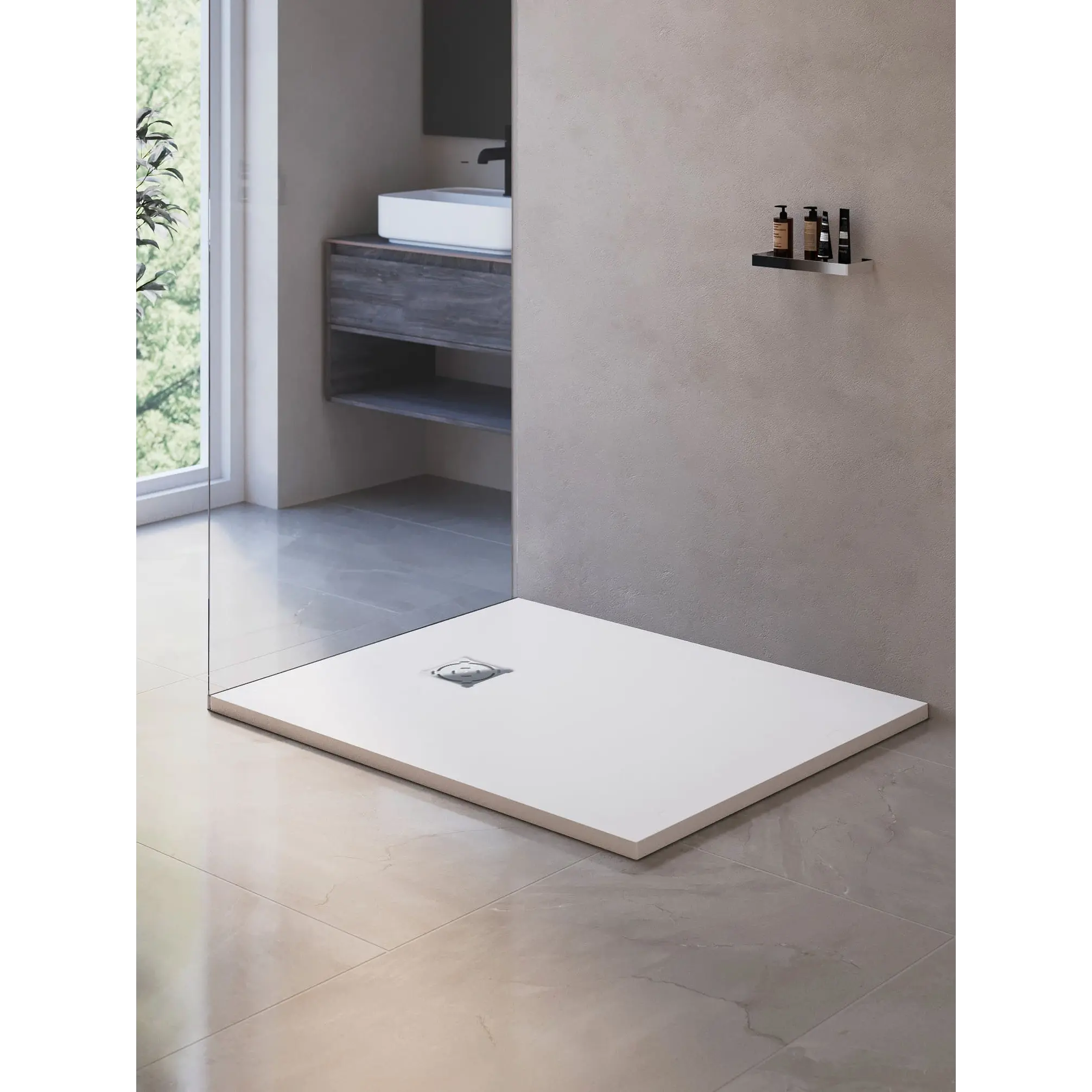Душевые поддоны из искусственного камня, обладают высокой прочностью и долговечностью. Материал поддона позволяет резку по индивидуальным размерам. Поверхность поддонов рельефная, антискользящая. Нагрузка на поддон до 300 кг.