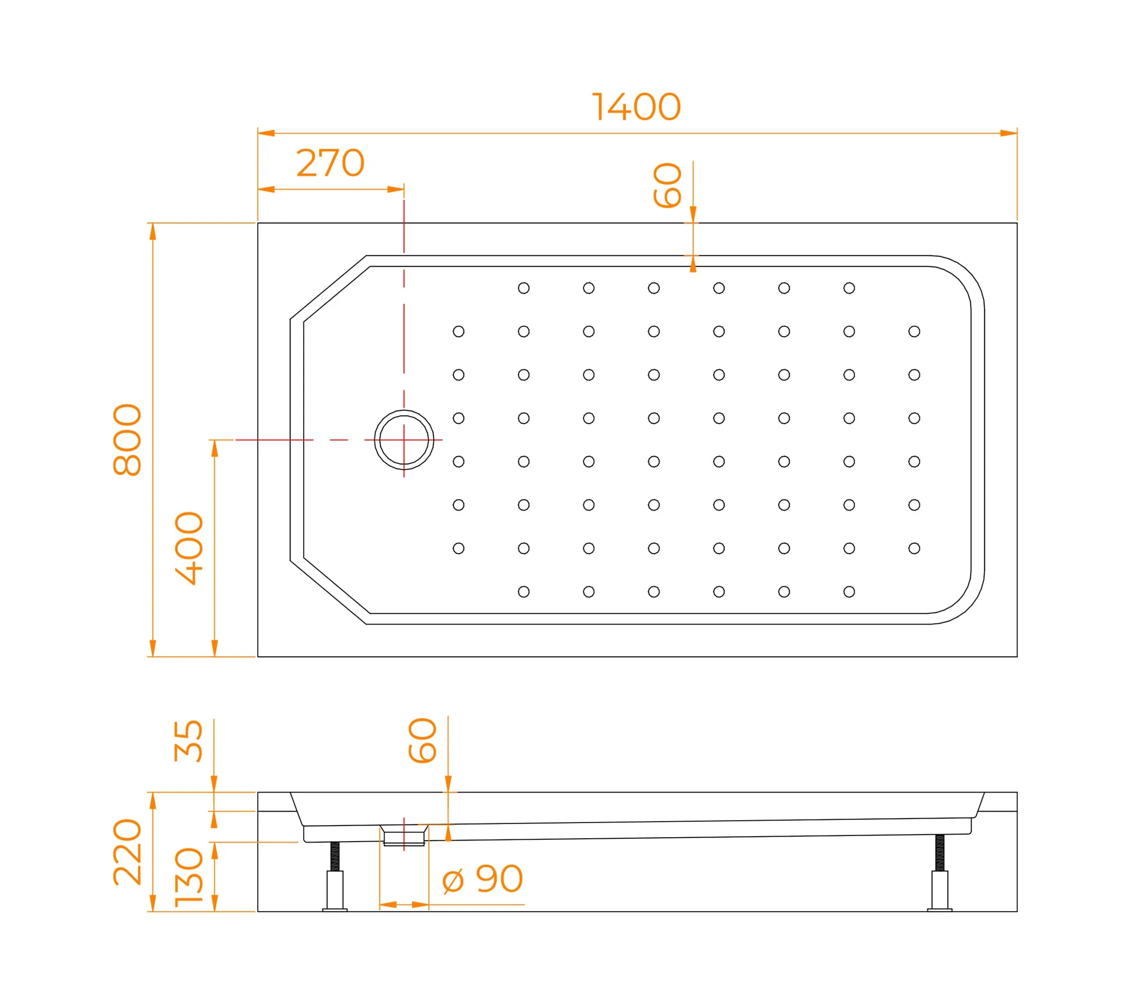 Душевой поддон прямоугольный RGW STYLE 90 80х140